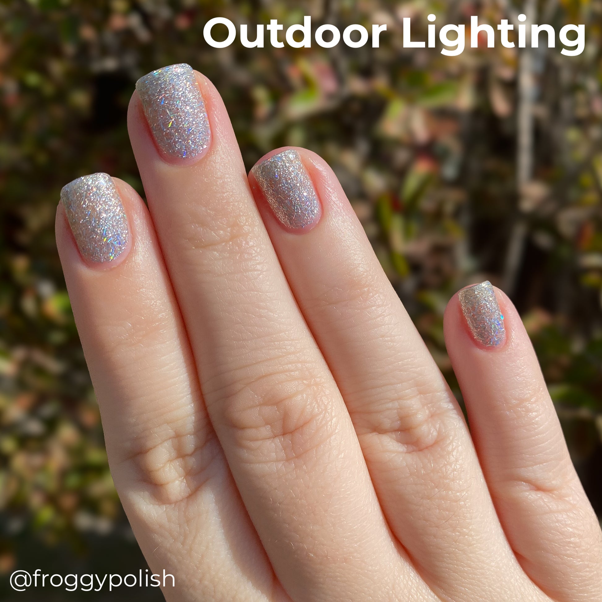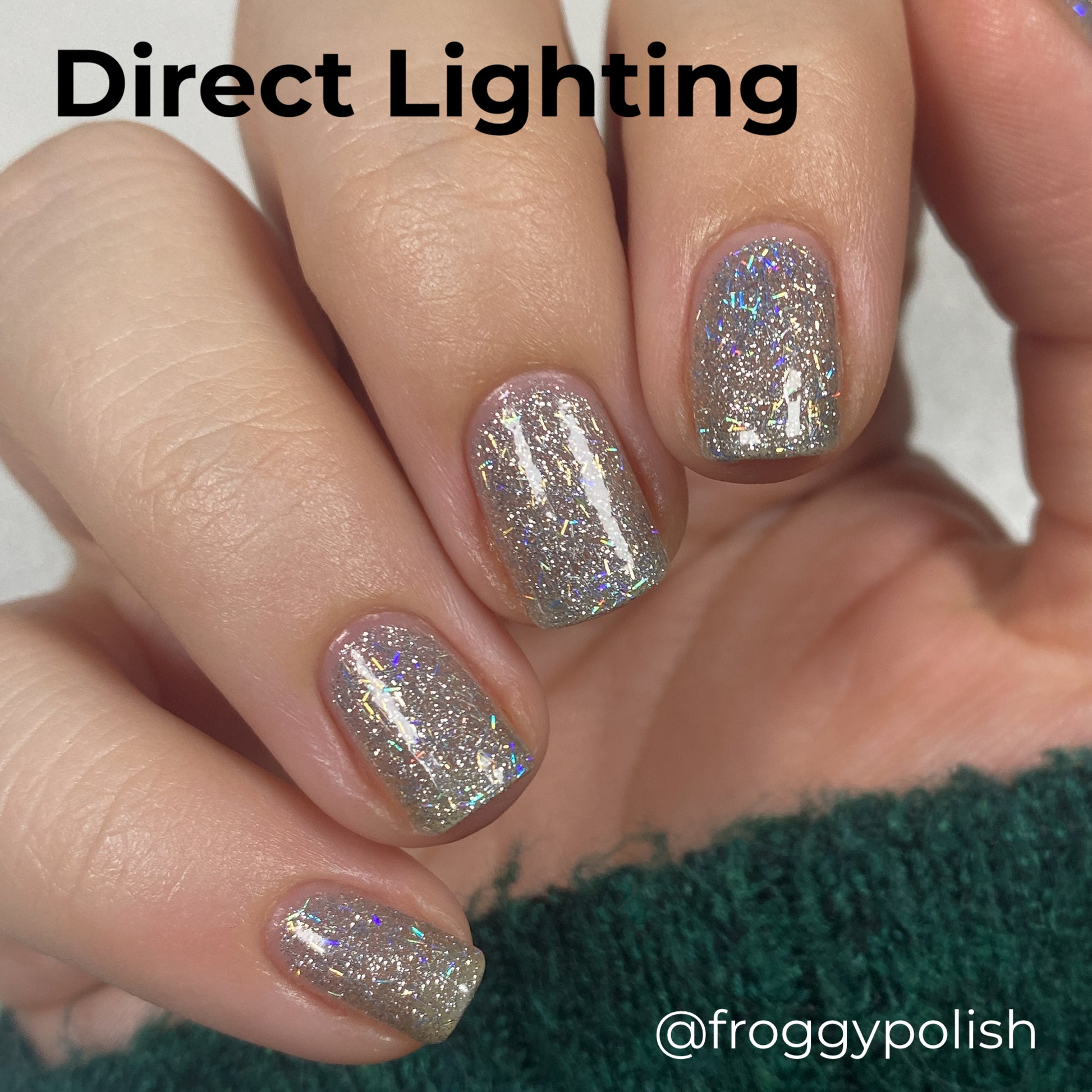 - @froggypolish used a peel off base, three coats of polish, one coat of glitter grabber, and a glossy top coat.