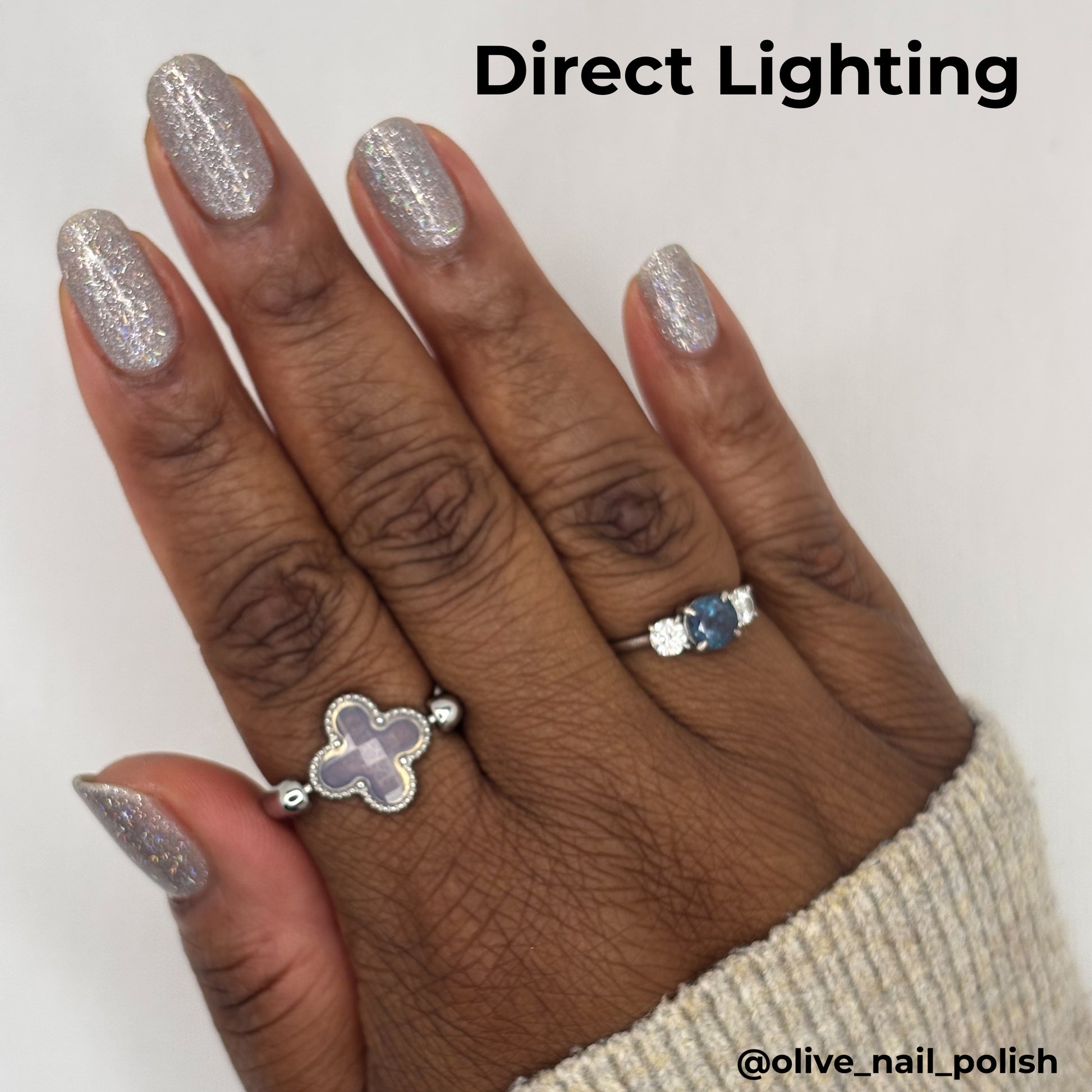 - @olive_nail_polish used 2 coats of polish, one coat of glitter grabber, and a top coat