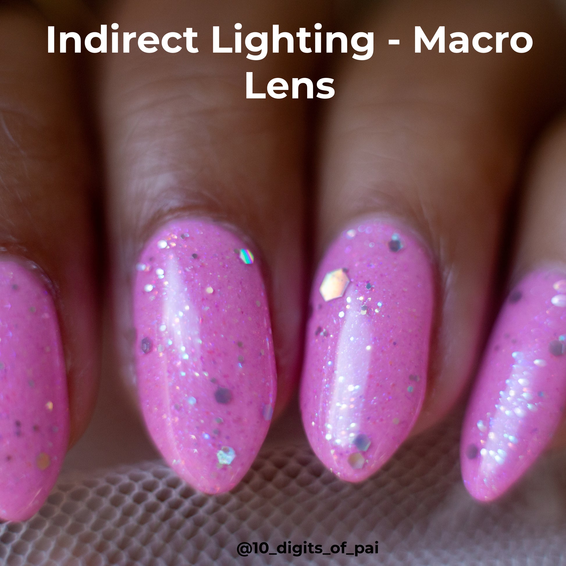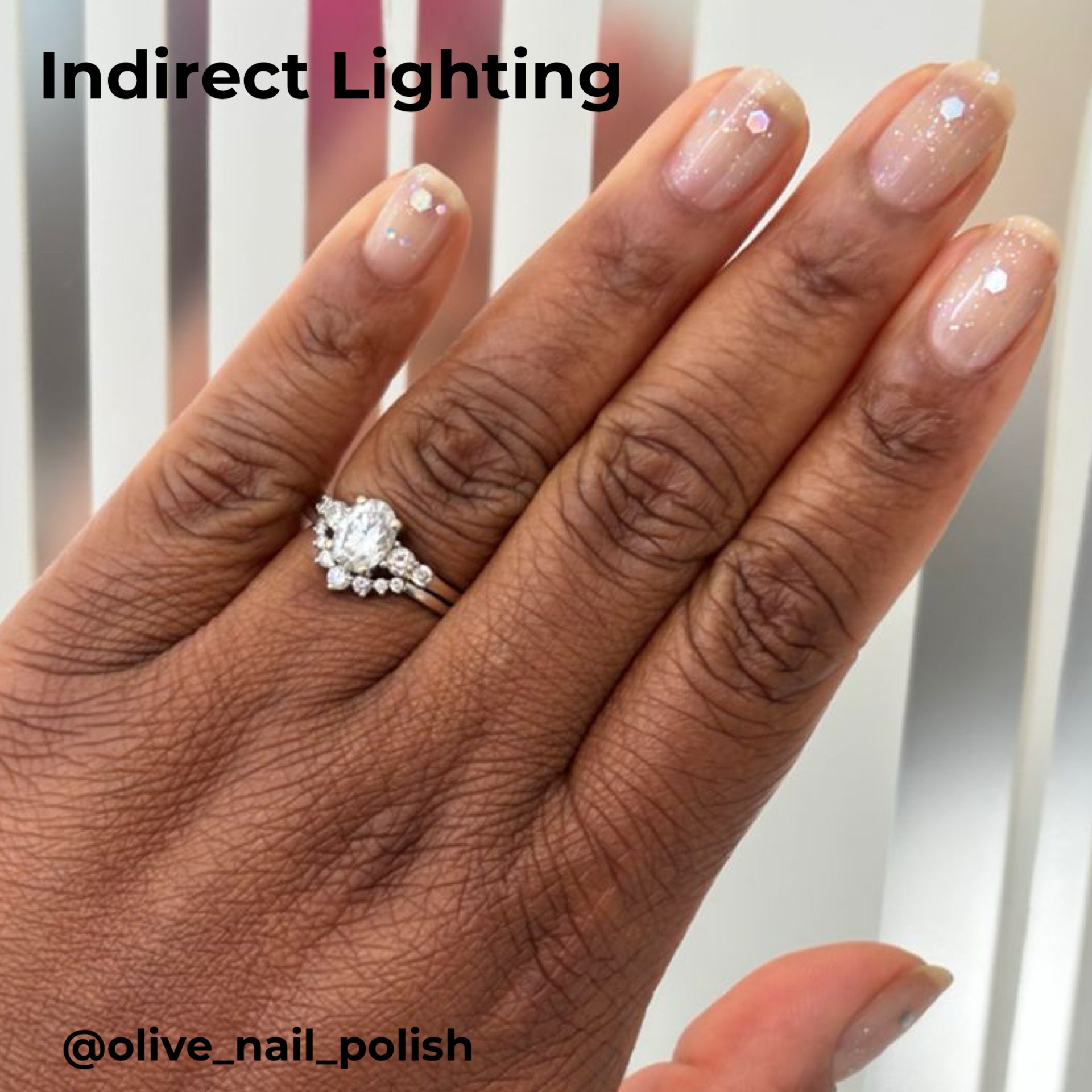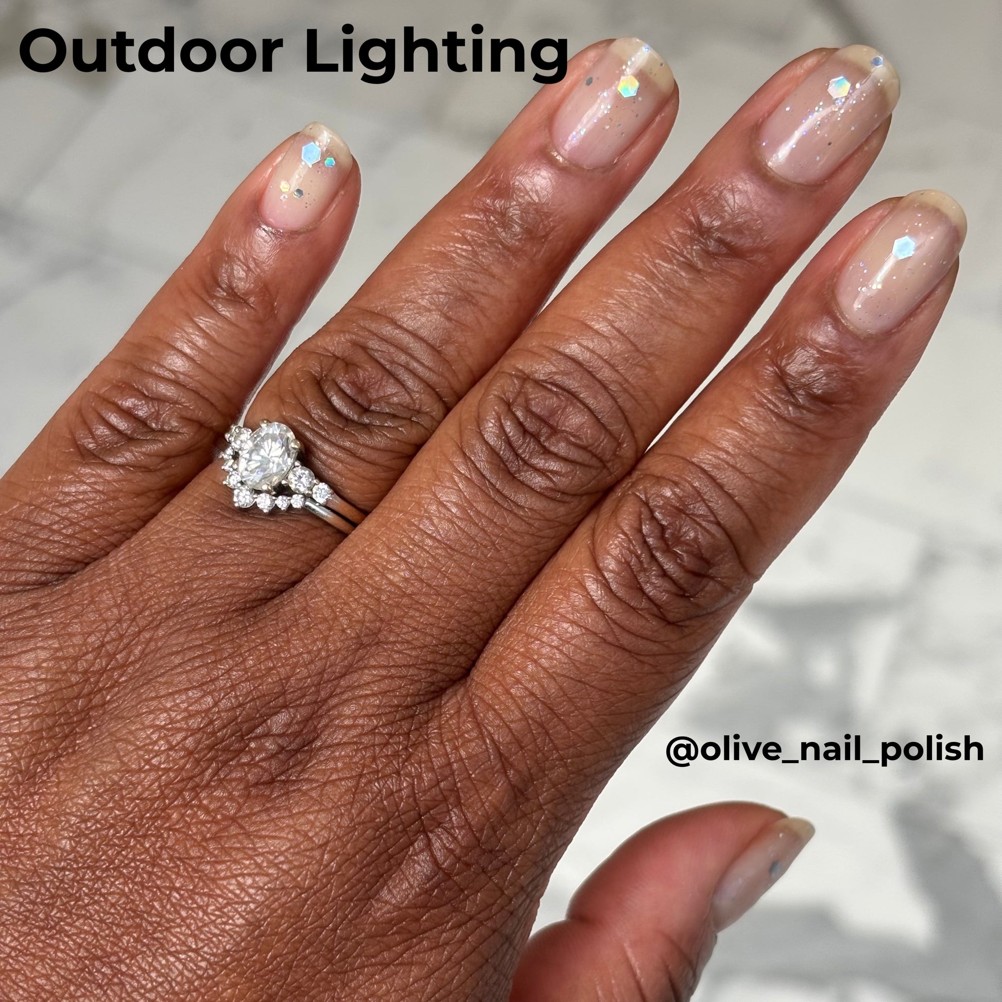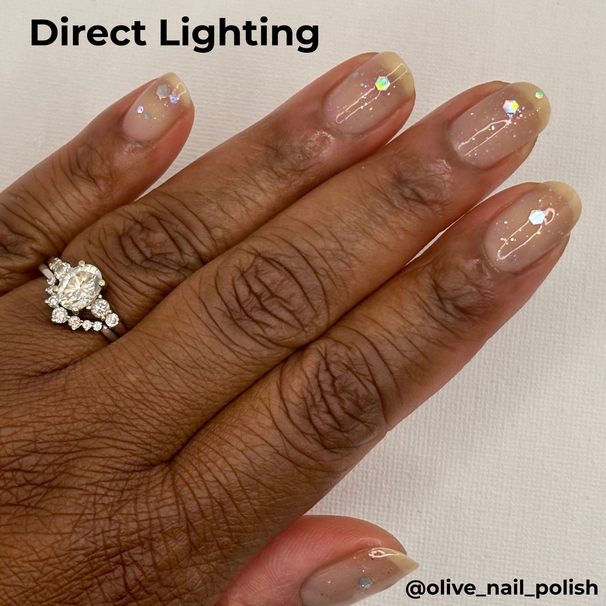 - @olive_nail_polish used a sheer pink base with two coats of Magic Bubble and some fished out glitters