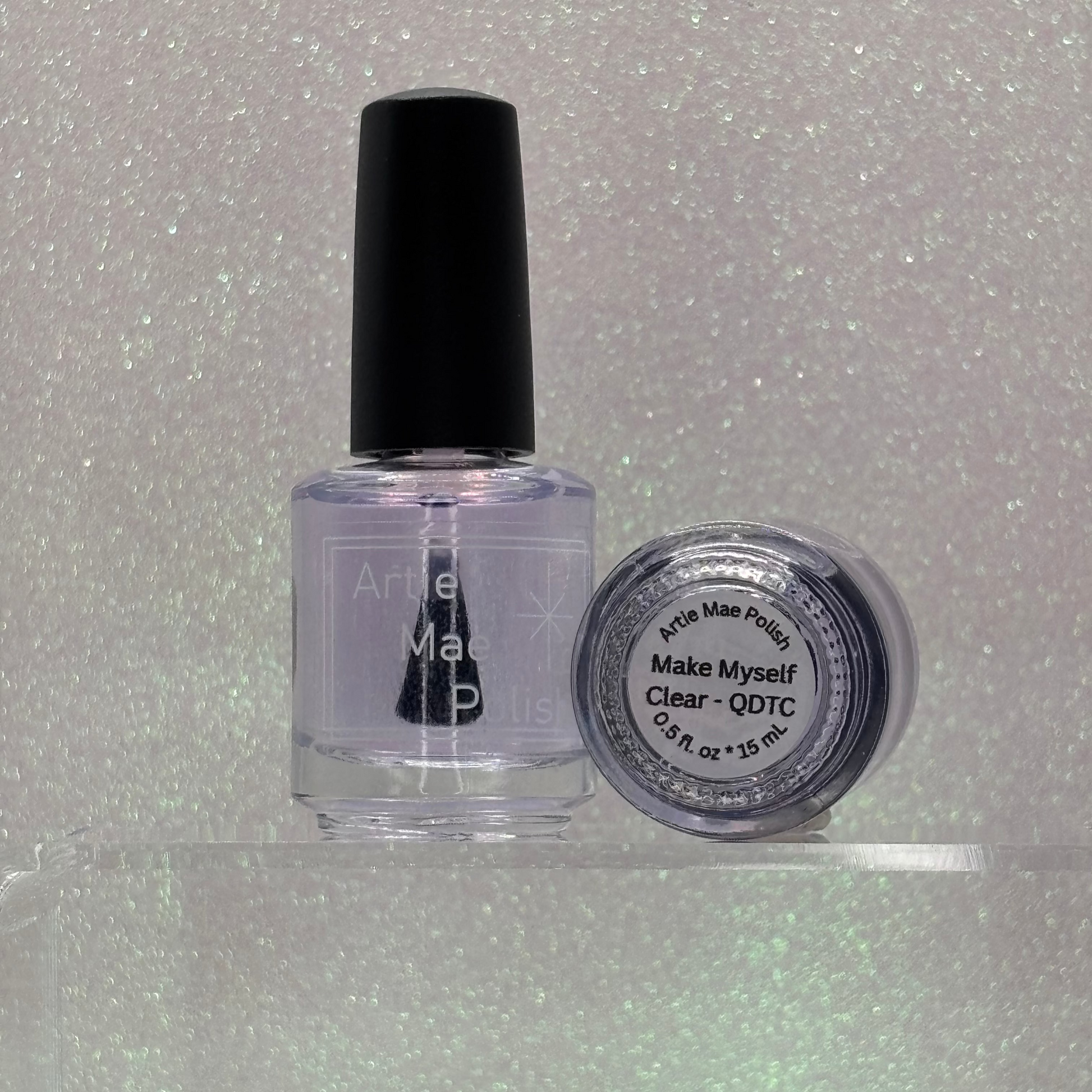 Make Myself Clear QDTC is a toluene-free quick dry top coat that seals in your mani and leaves it looking plump and shiny.