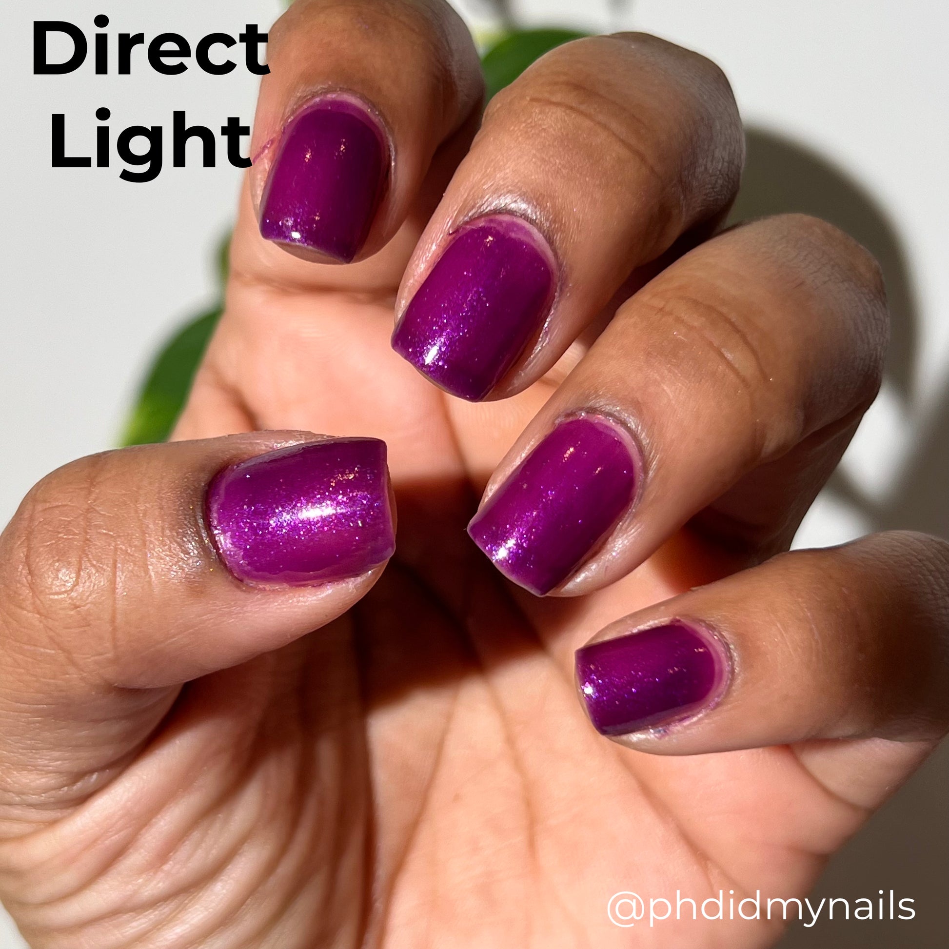 Someone becoming vengeful after being betrayed and having their wings cut off definitely blurs the line of evil. Maleficent is a purple shimmer polish that is a vibrant berry purple when warm and a deep royal purple when cold.