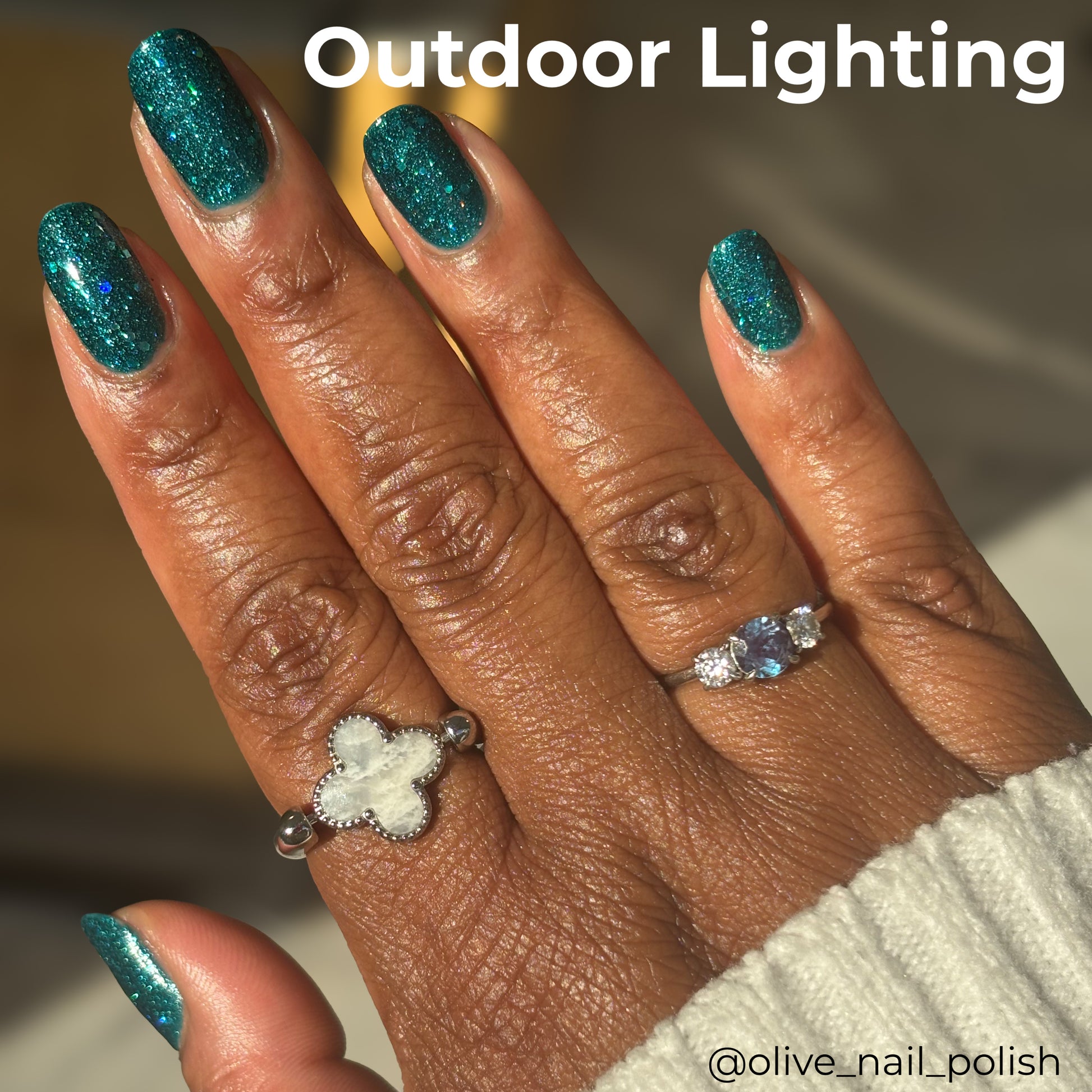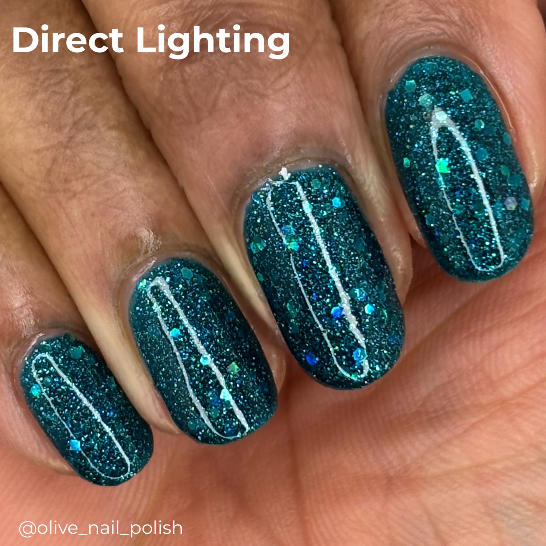 - @olive_nail_polish used two coats of polish, one coat of glitter grabber, and a top coat