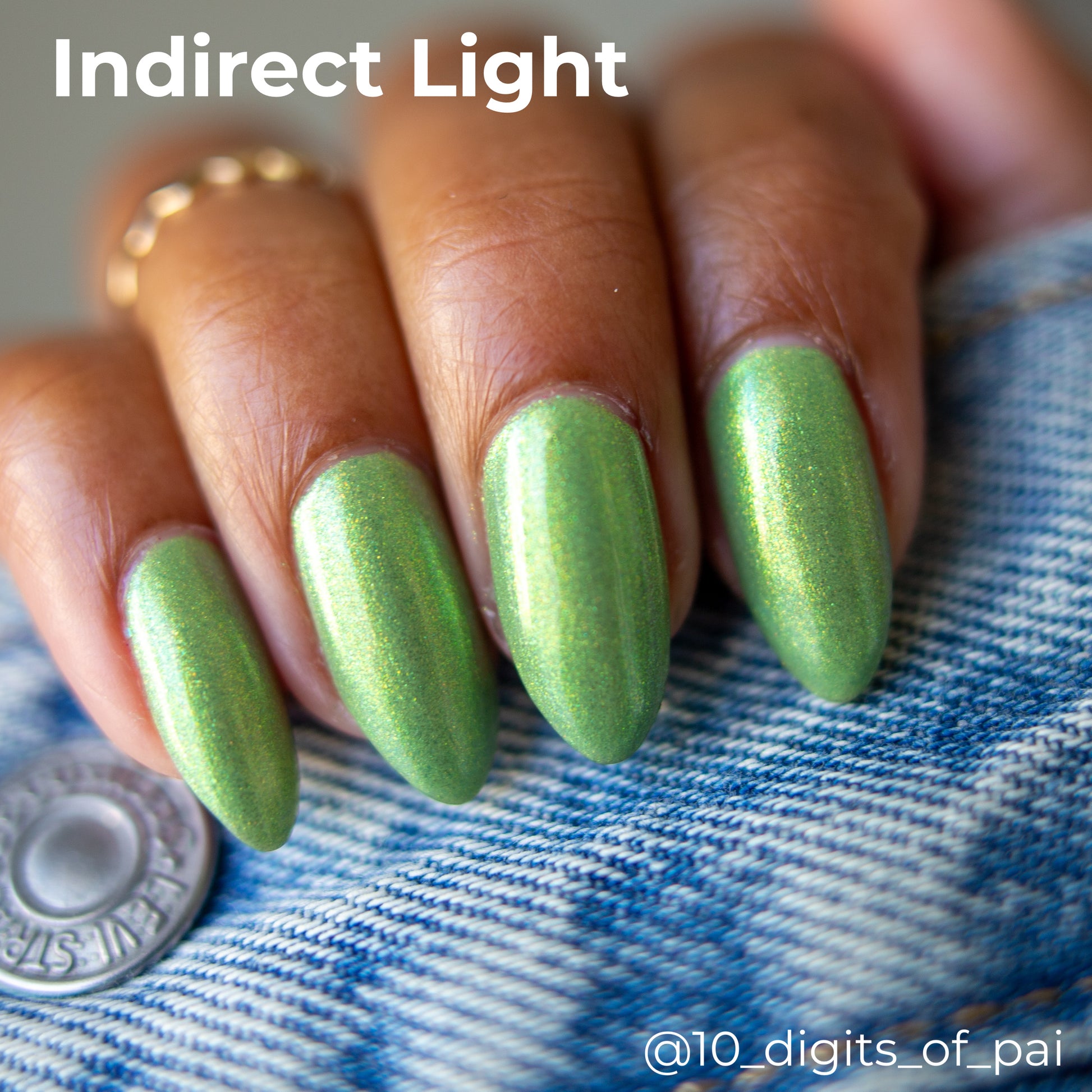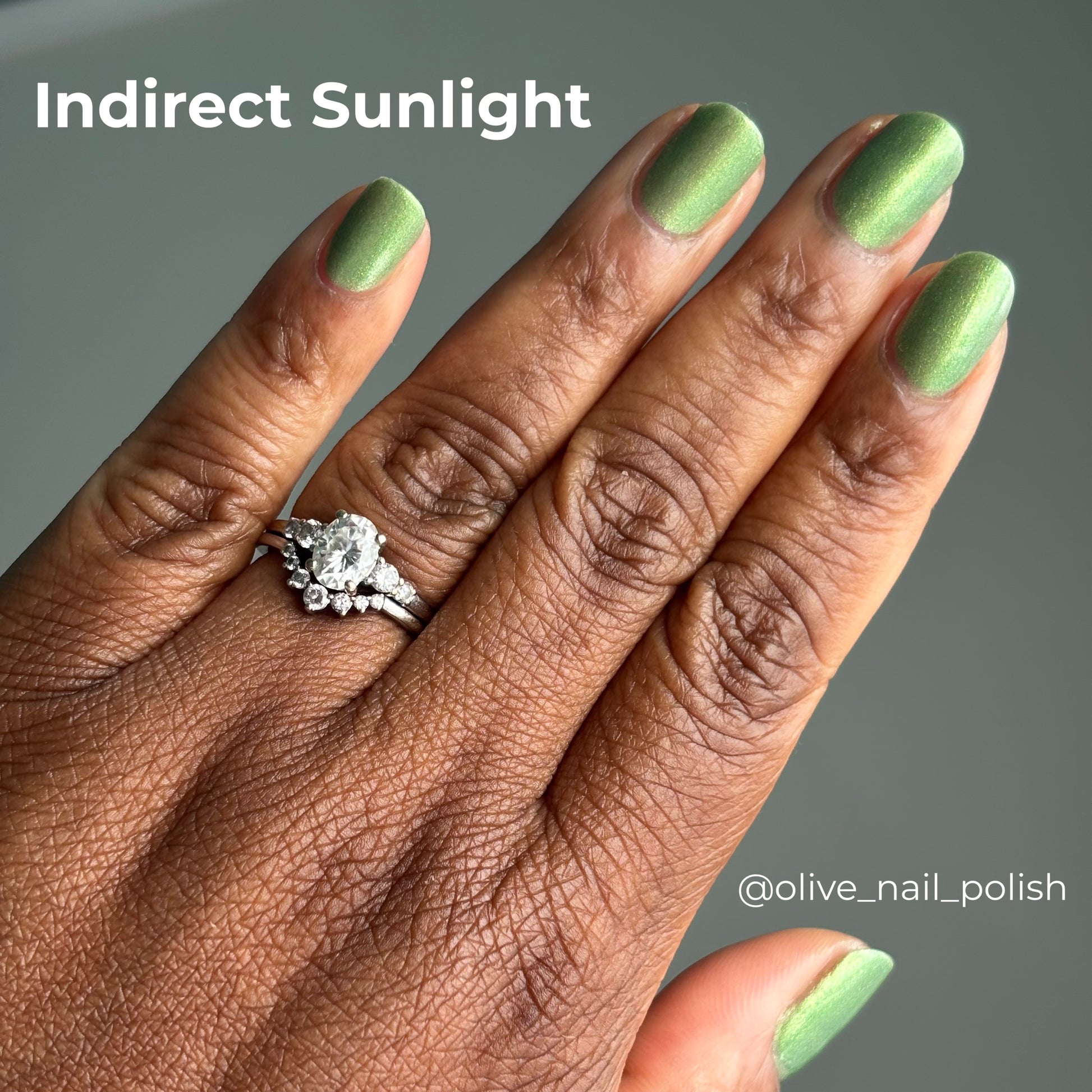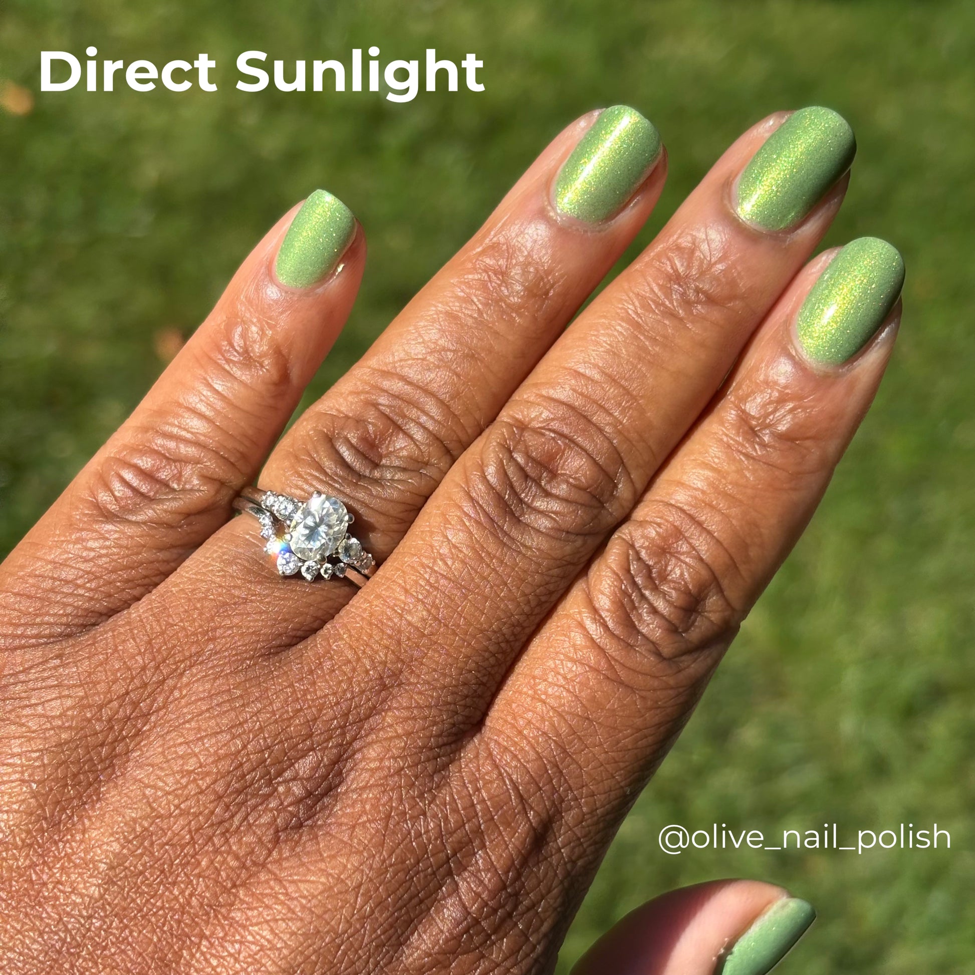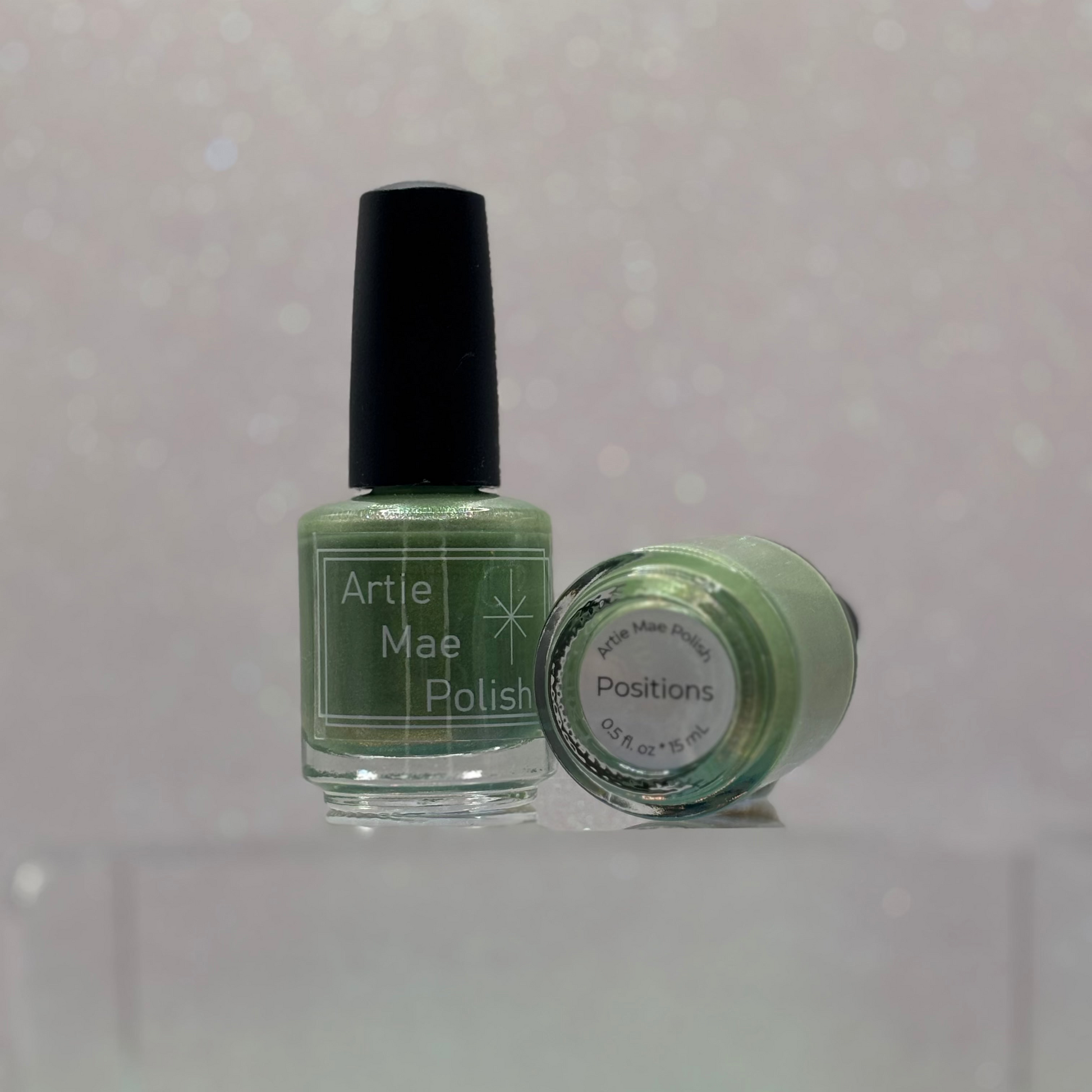 Based on the vibes around Ariana Grande's Positions album, Positions is a green based polish with yellow and green shimmer.