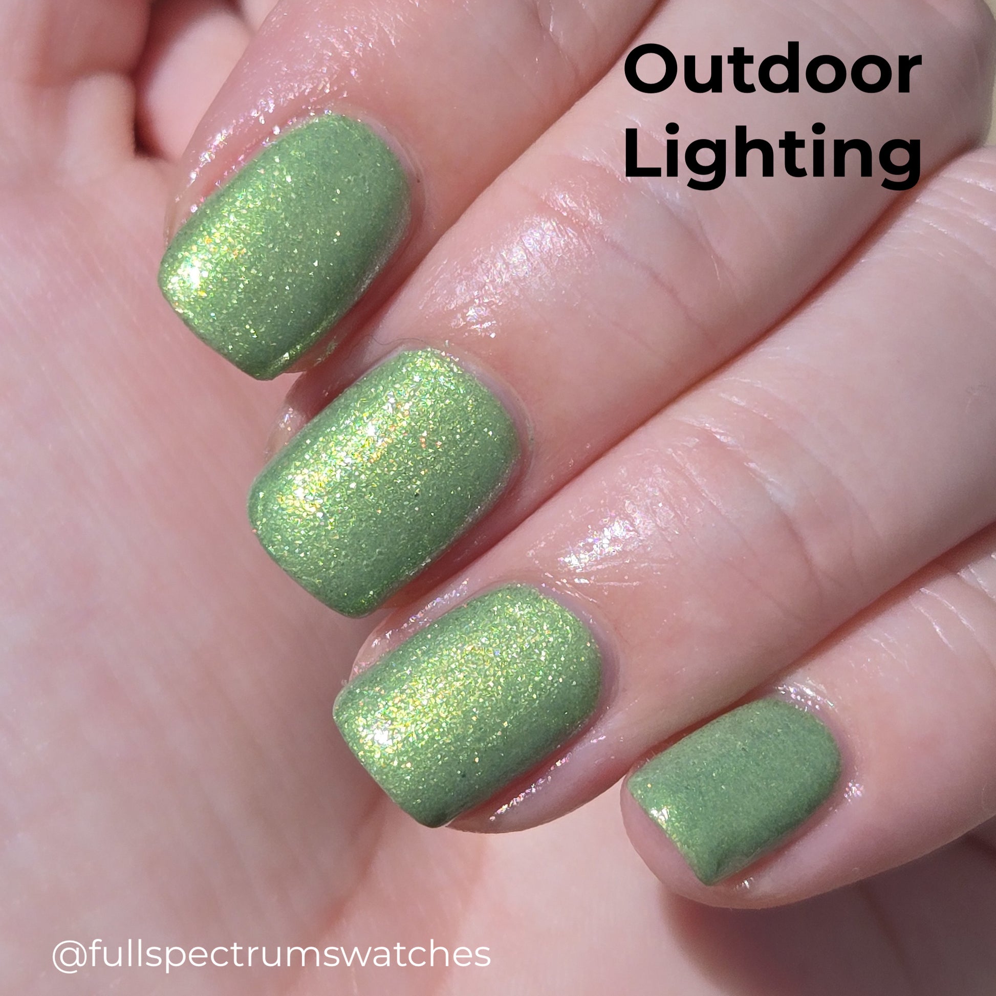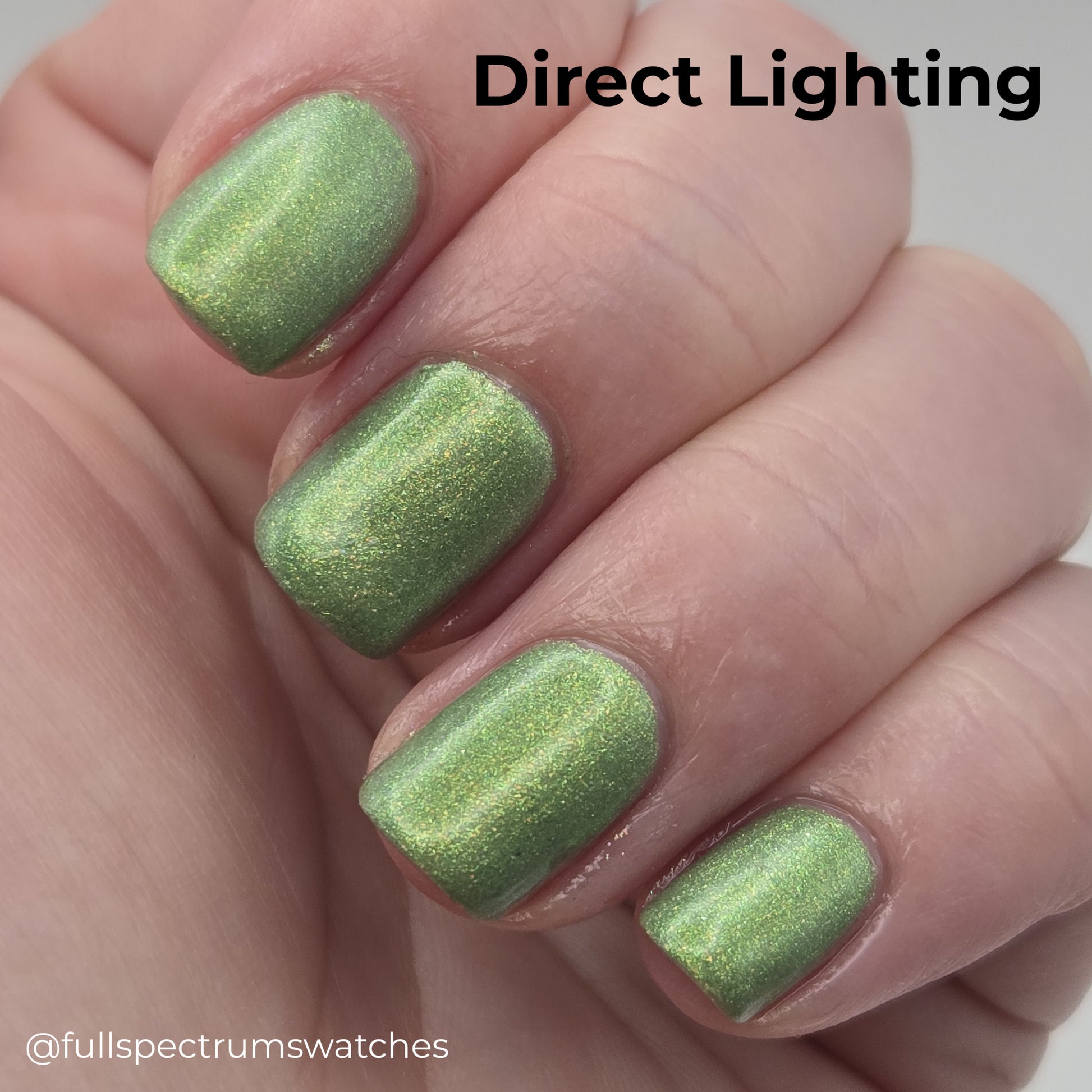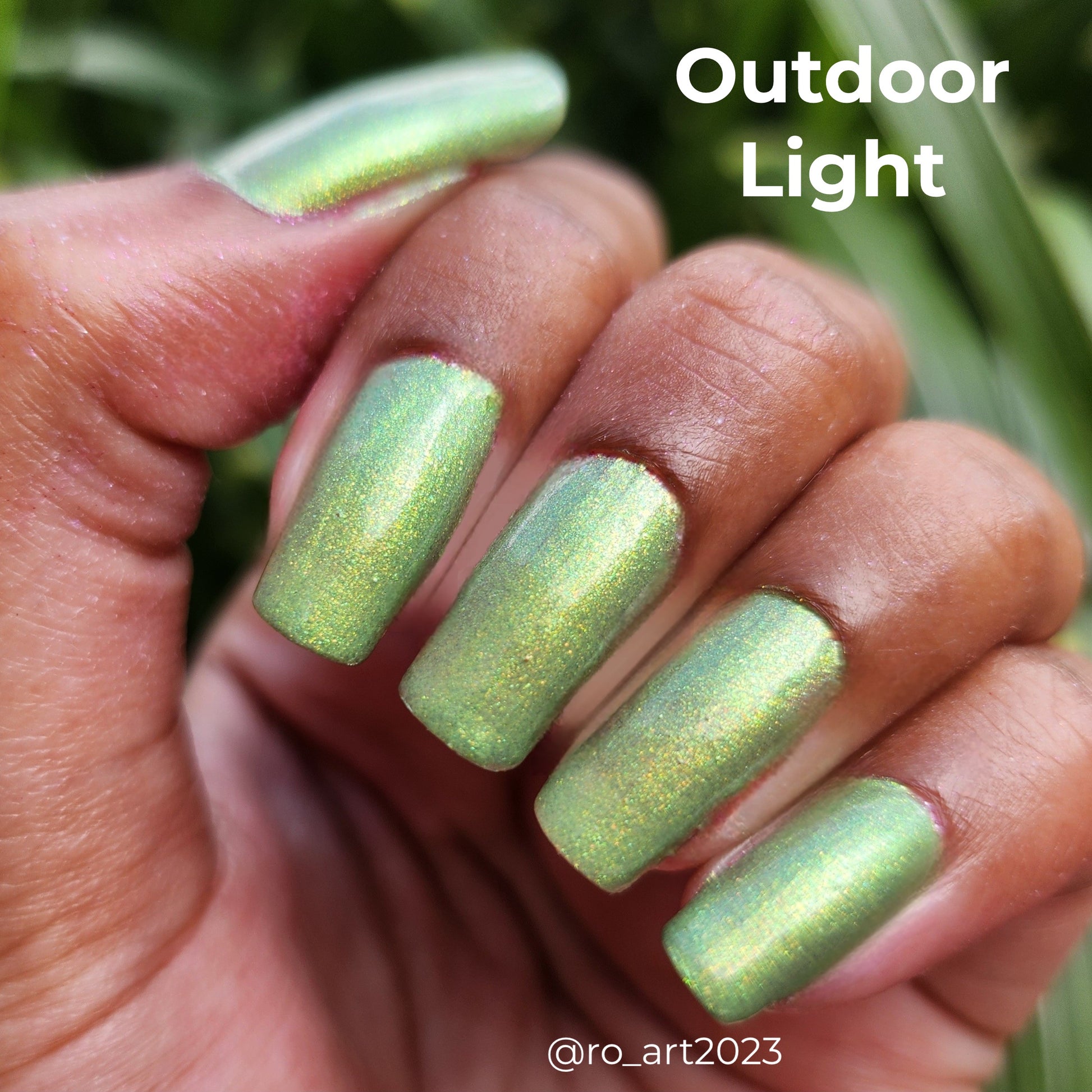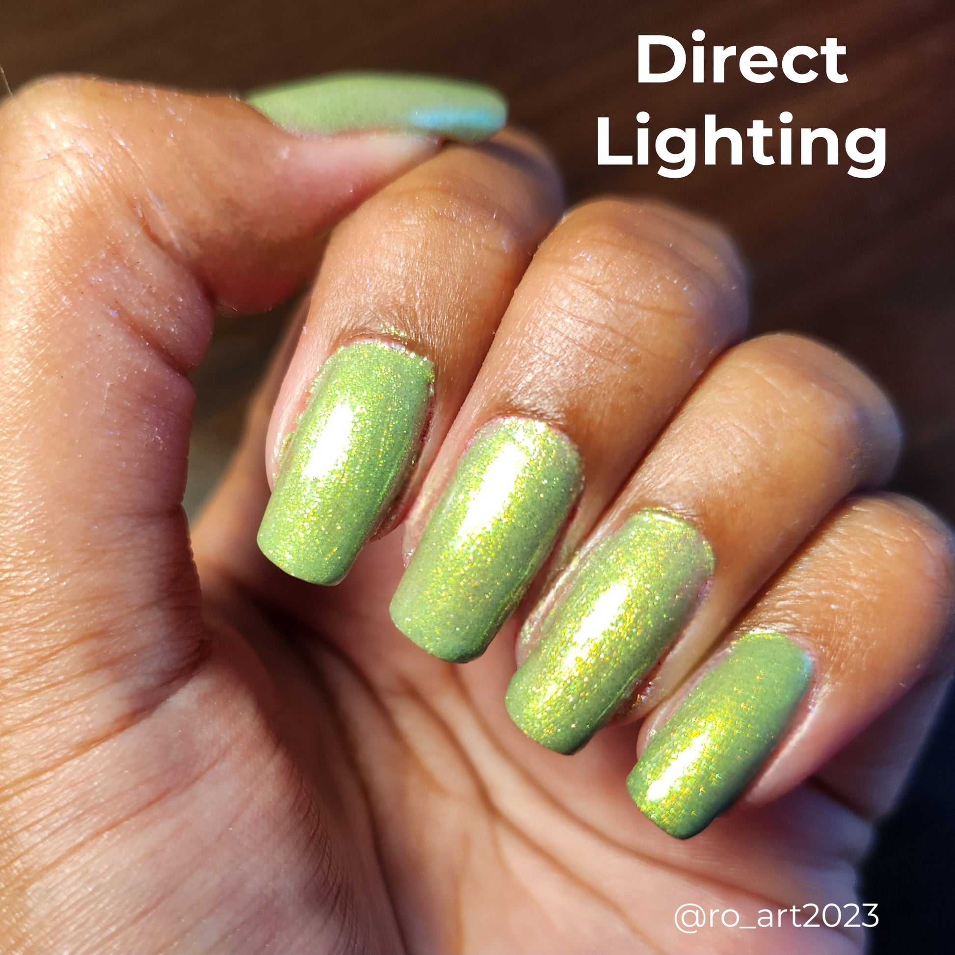 Based on the vibes around Ariana Grande's Positions album, Positions is a green based polish with yellow and green shimmer.