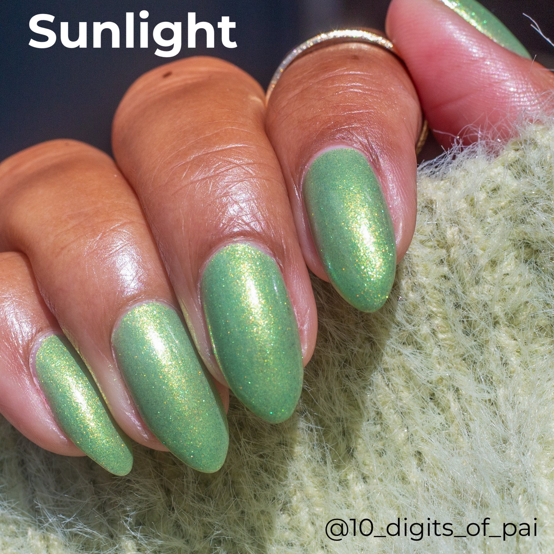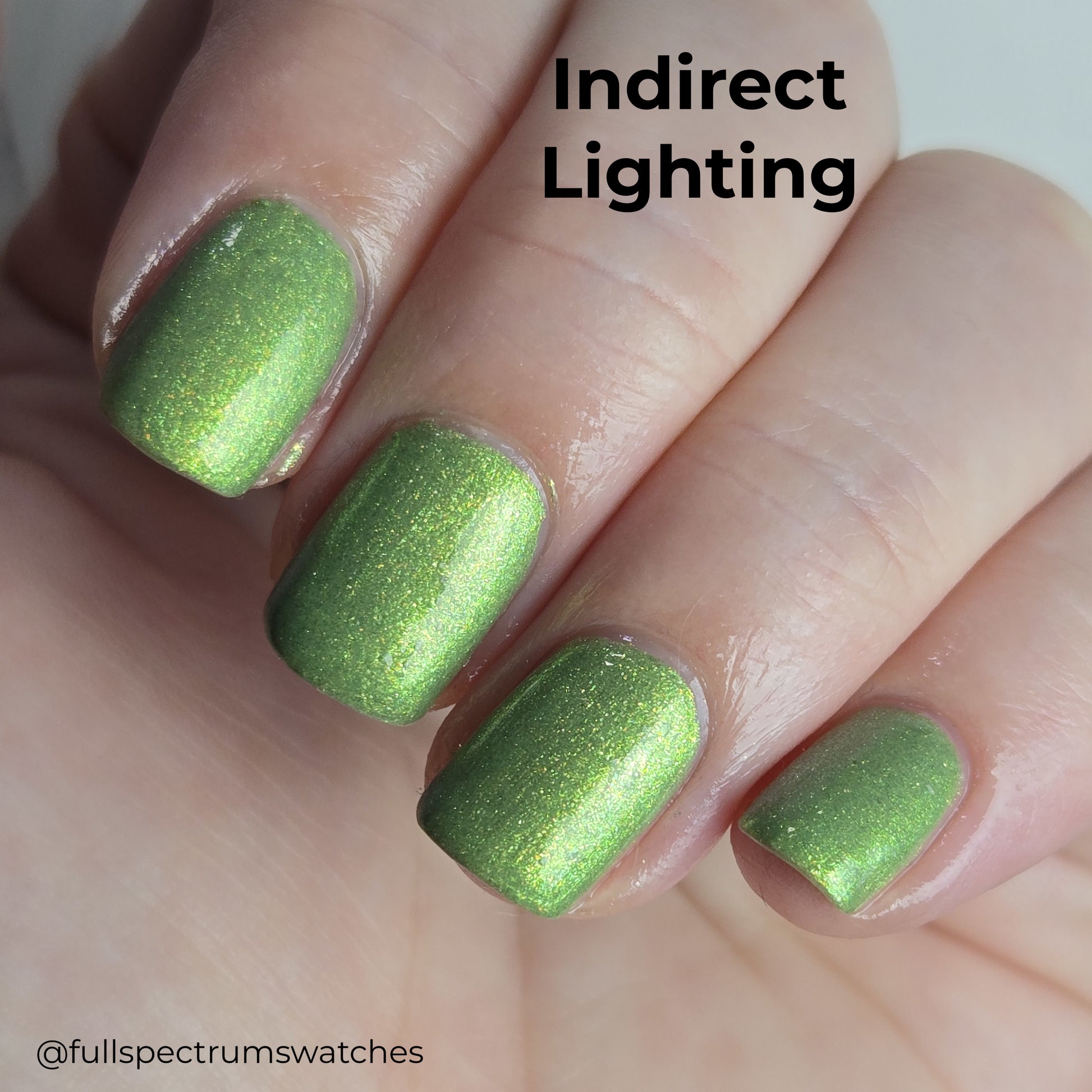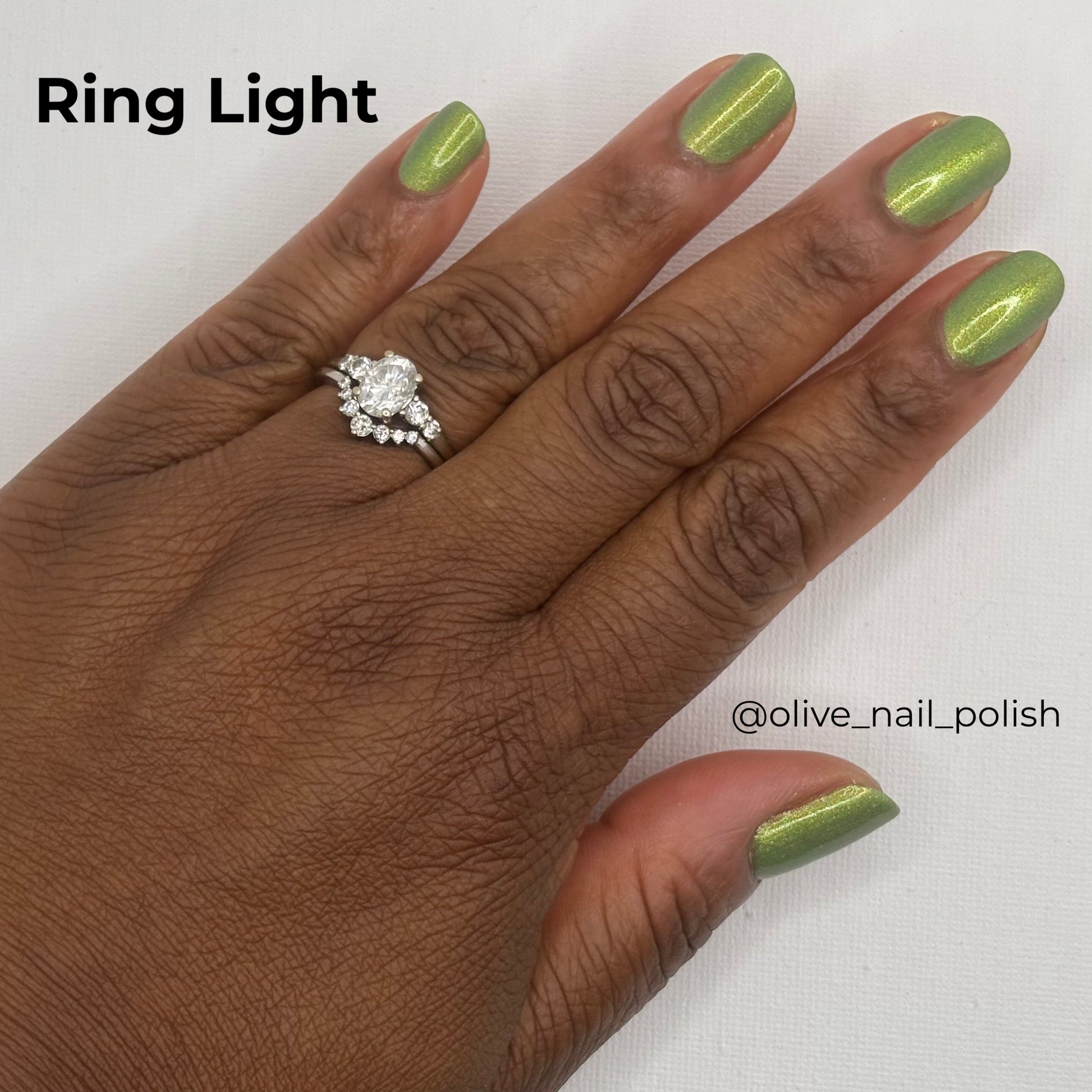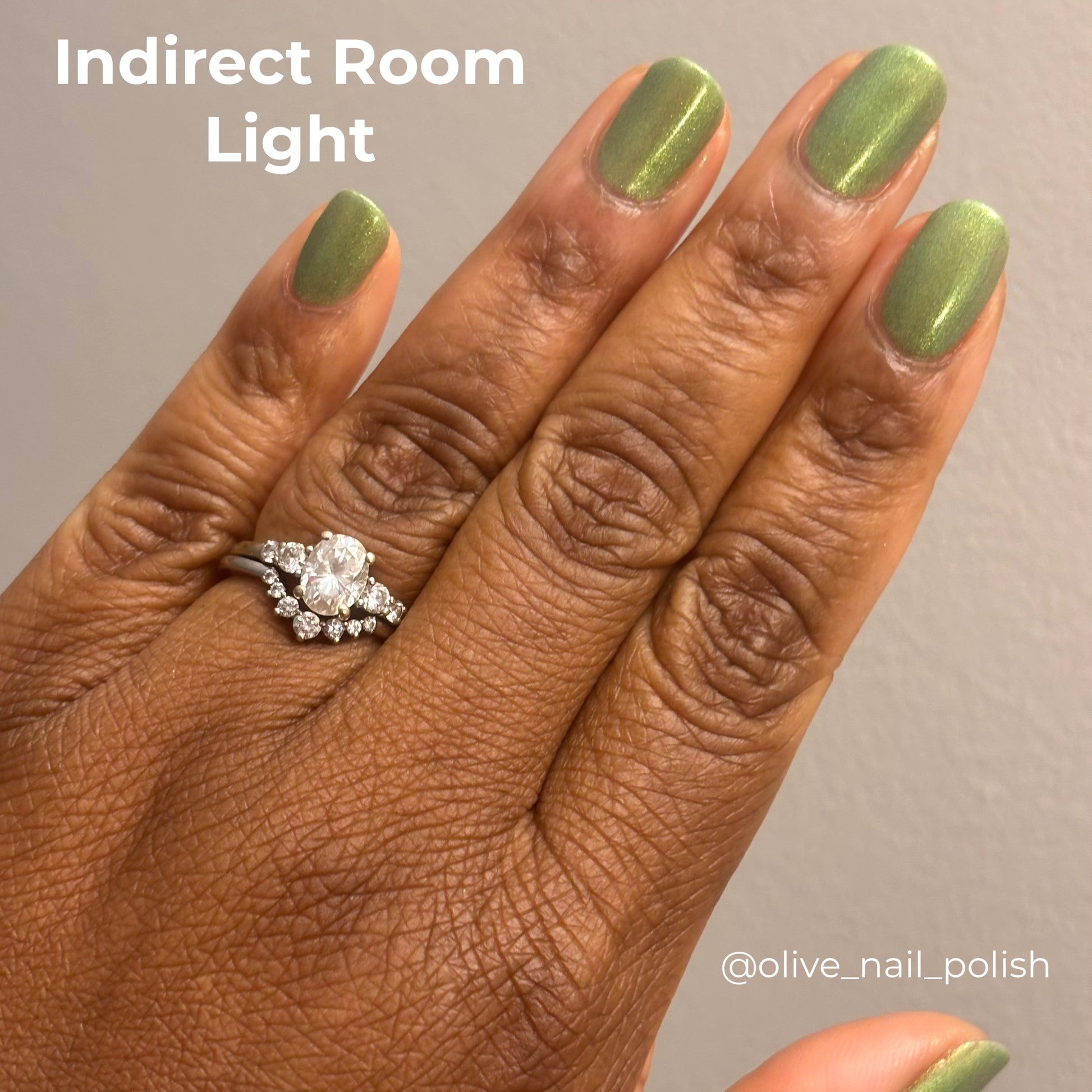 Based on the vibes around Ariana Grande's Positions album, Positions is a green based polish with yellow and green shimmer.