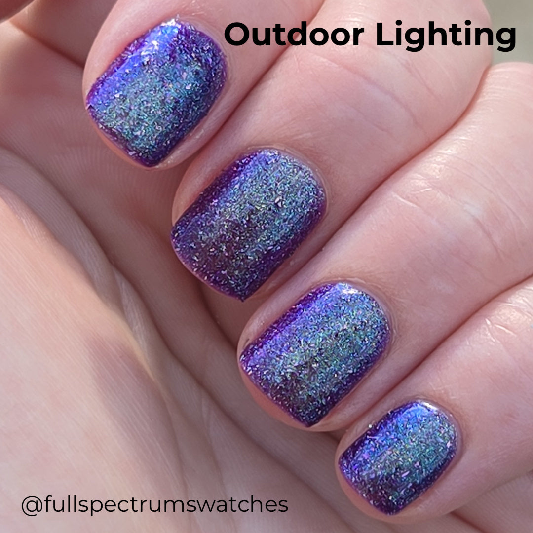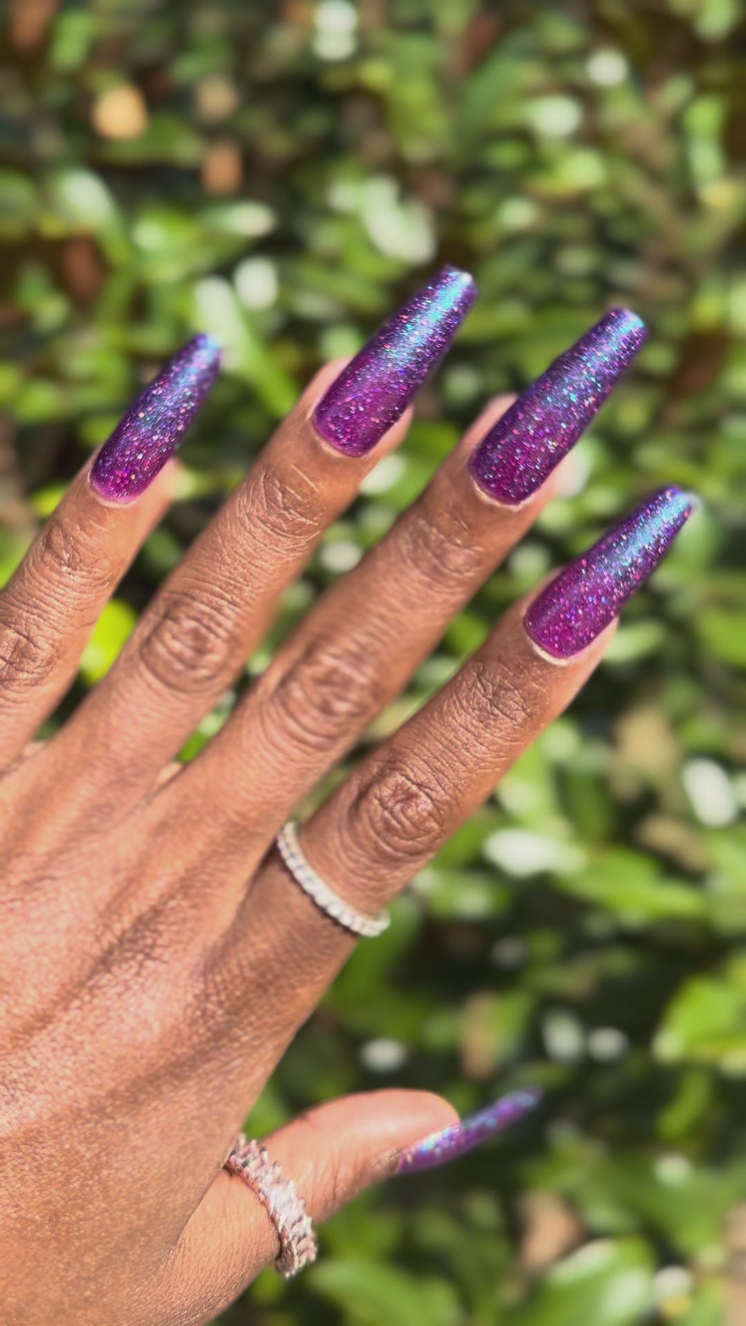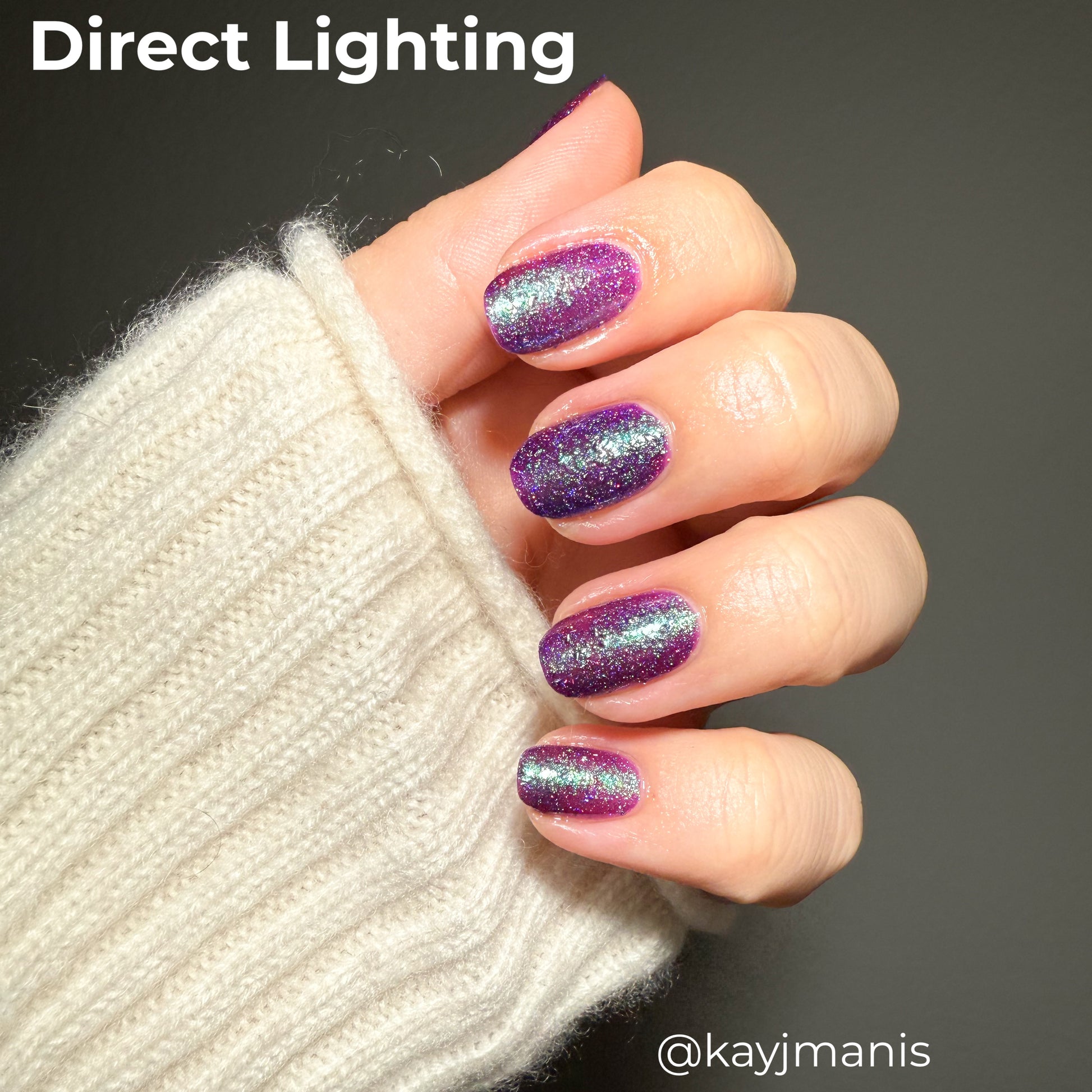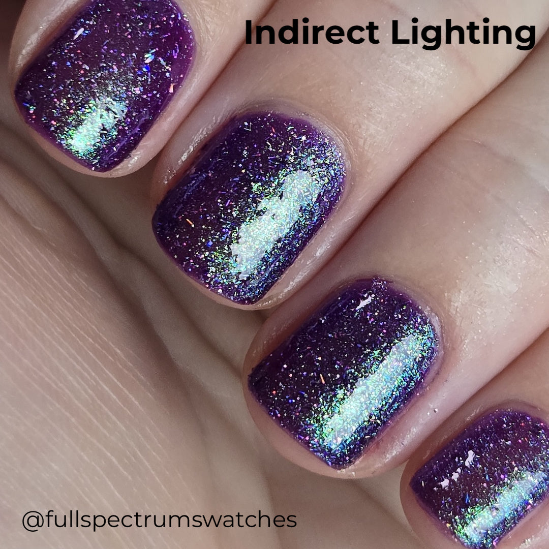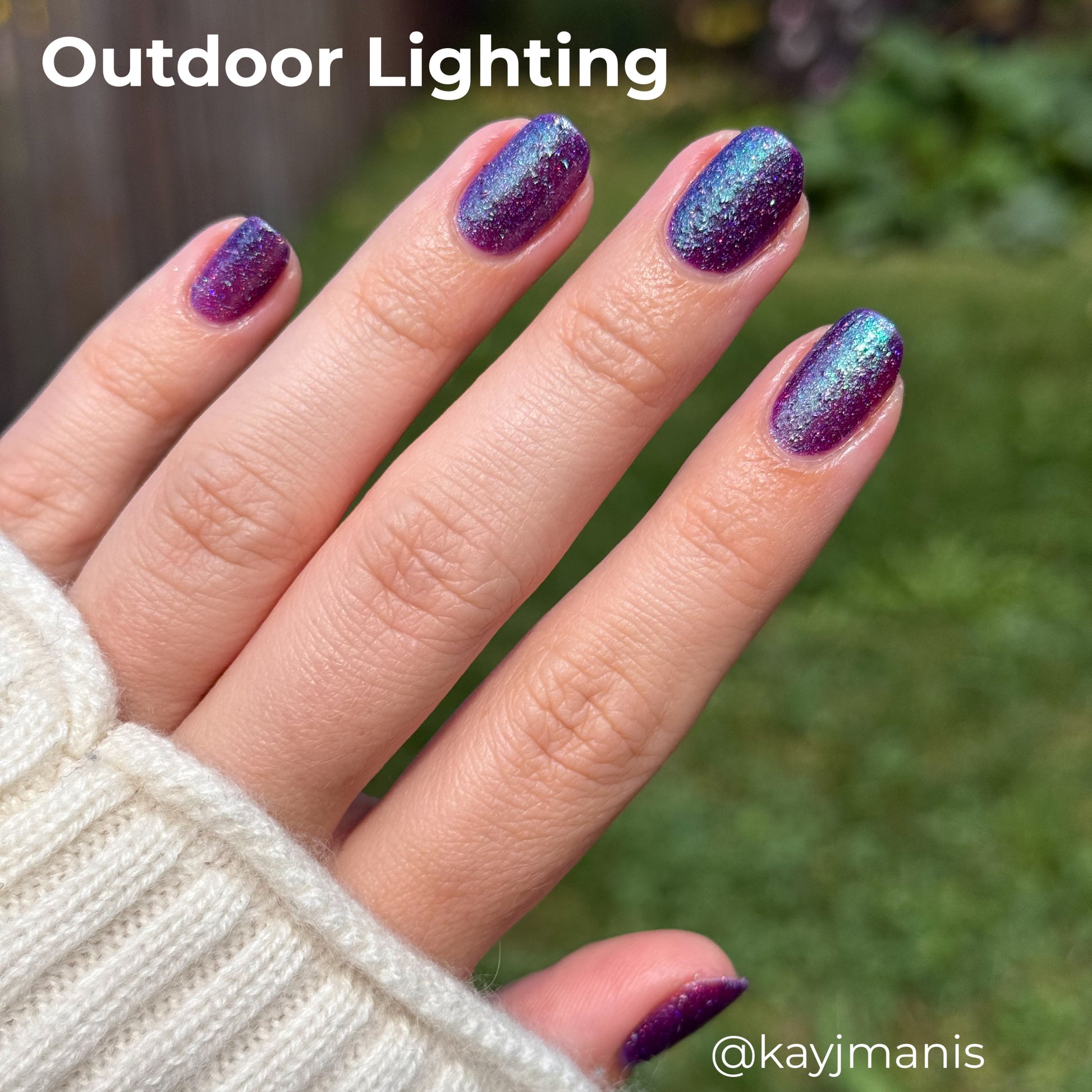 For my birthday this year, I am bringing you all Party Potion no. 27, a purple polish with a green/blue shifting shimmer, fine holo glitter, and holo flakes.