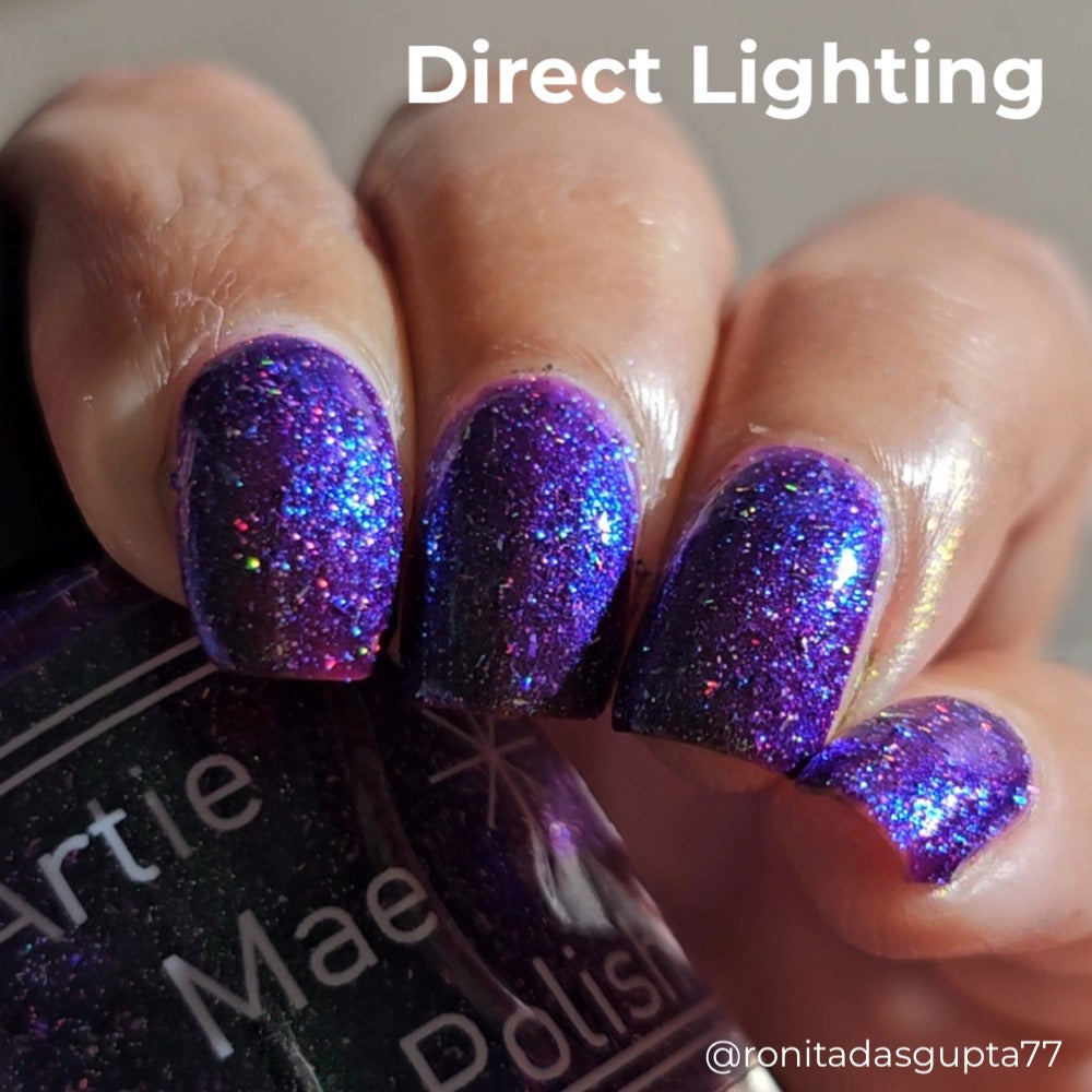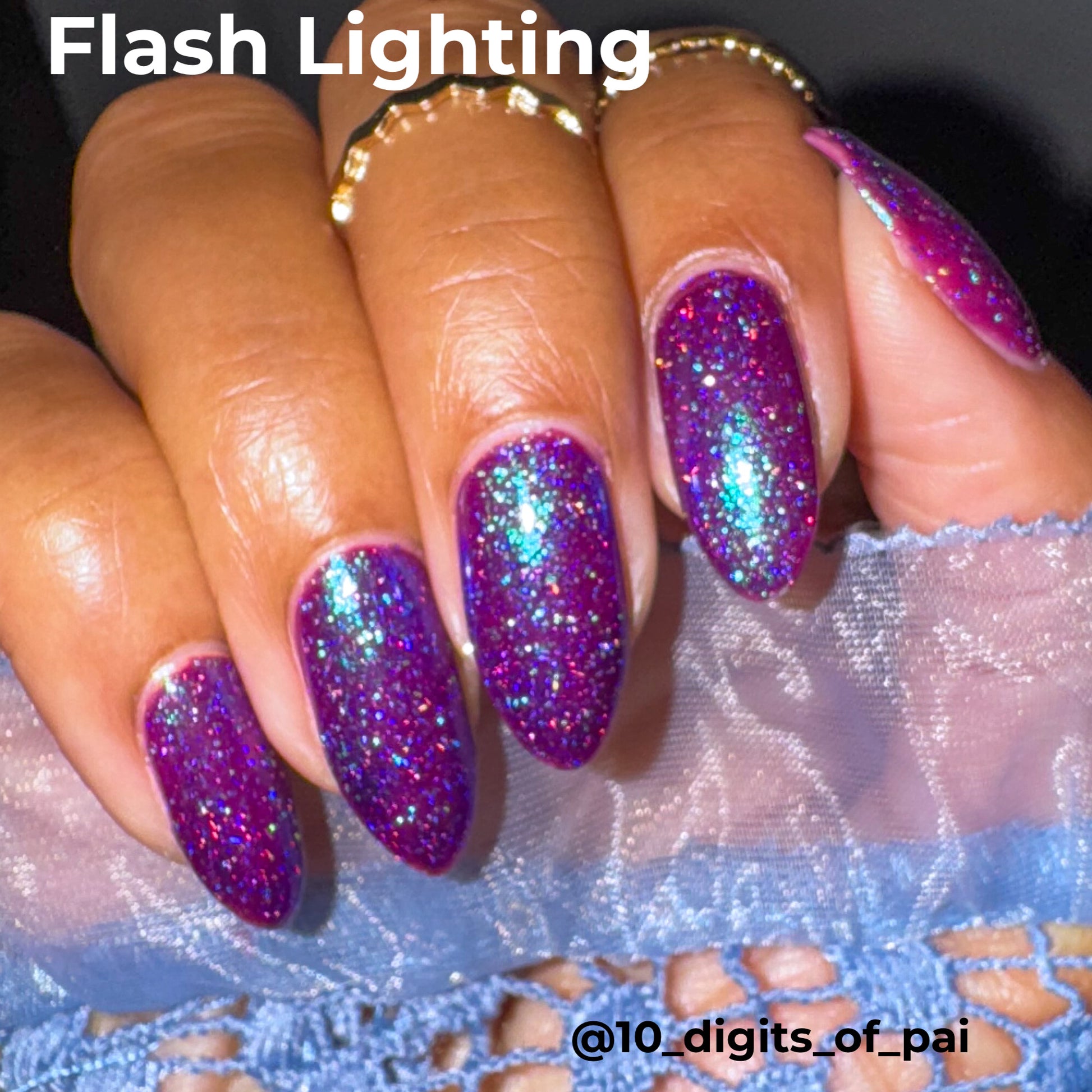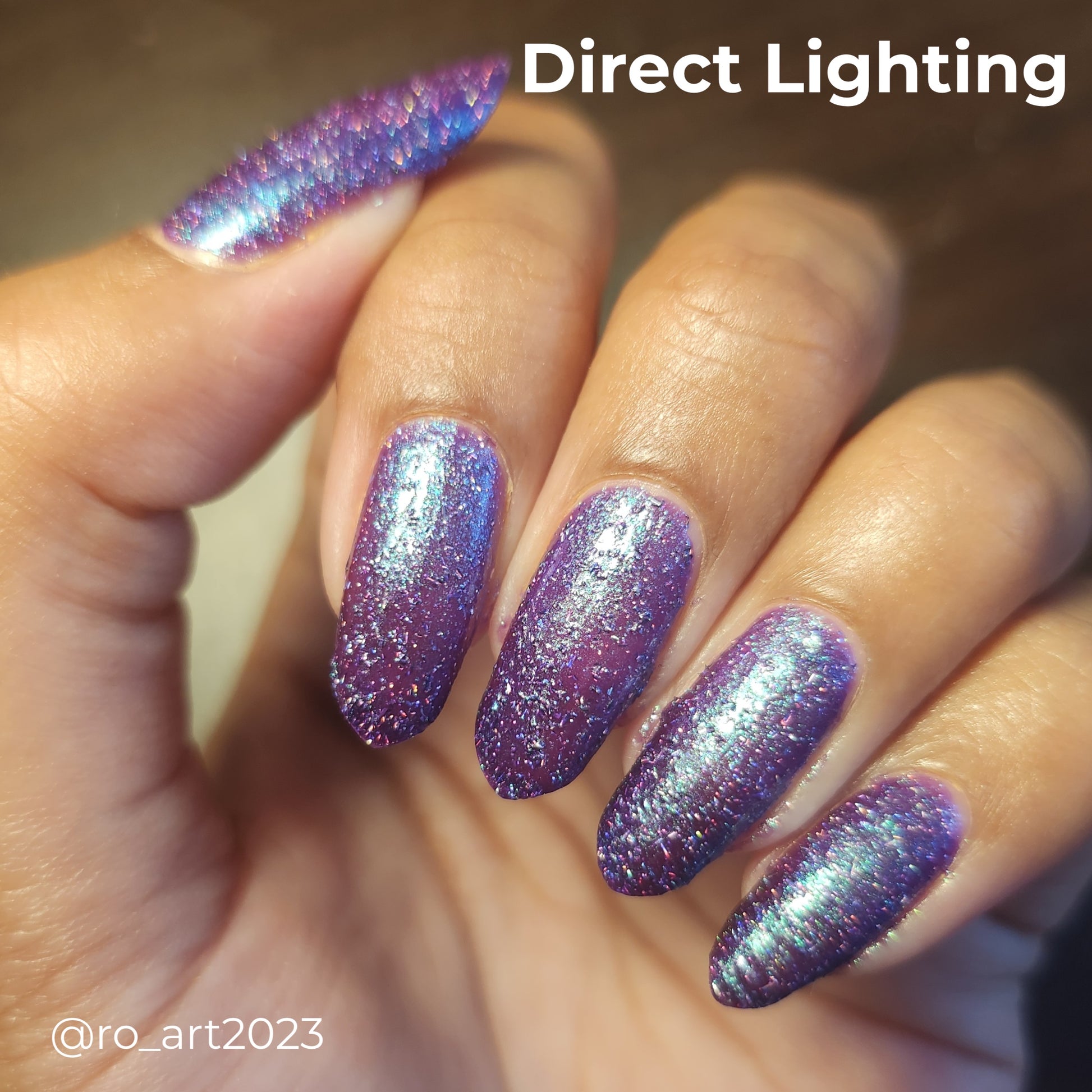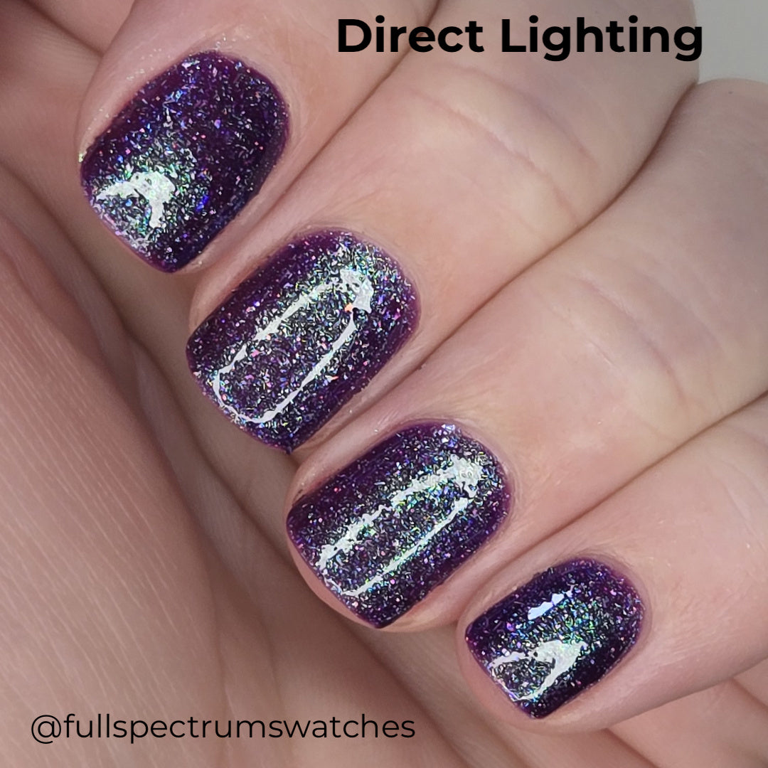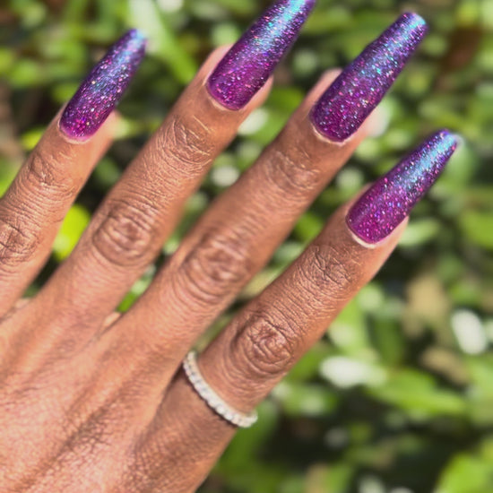 For my birthday this year, I am bringing you all Party Potion no. 27, a purple polish with a green/blue shifting shimmer, fine holo glitter, and holo flakes.