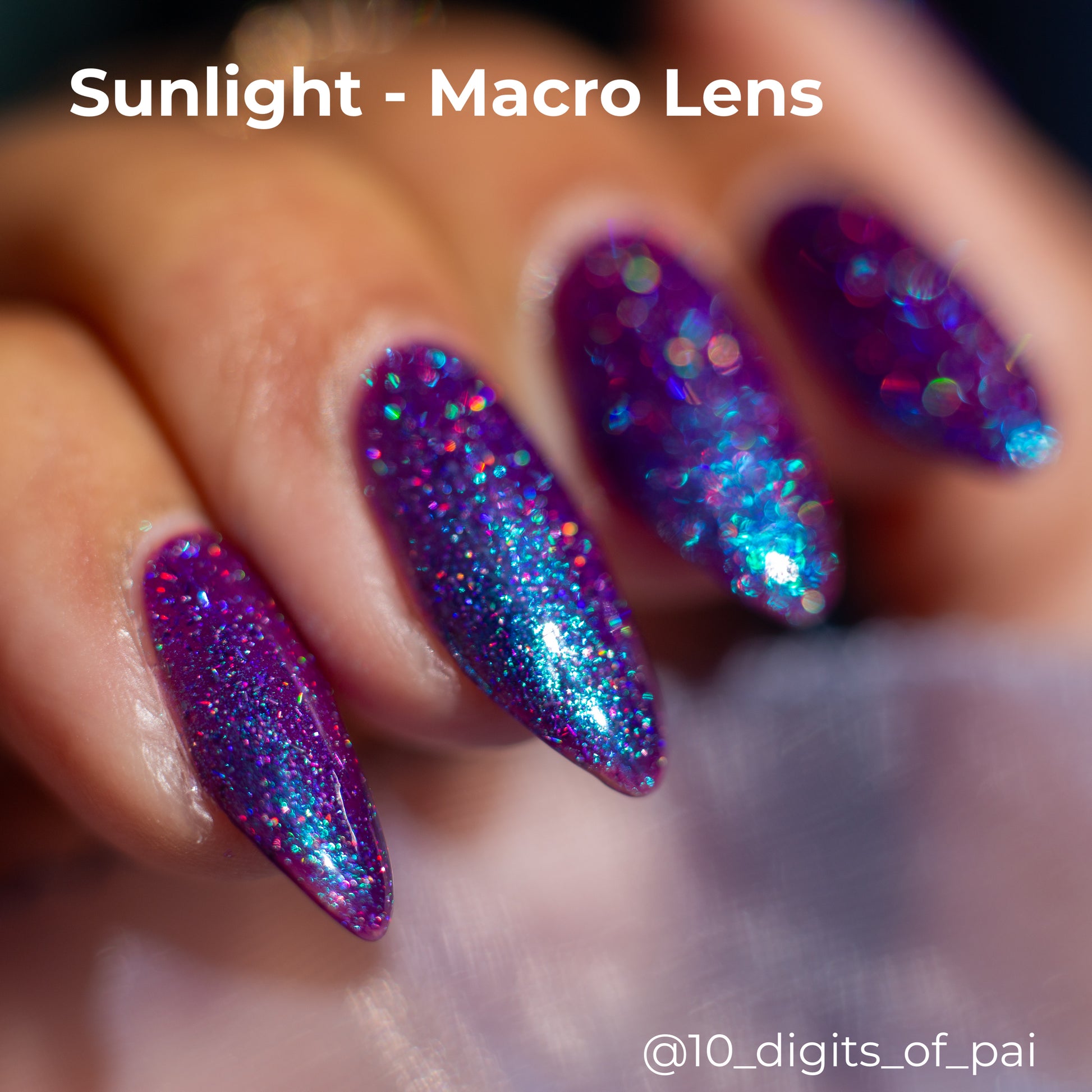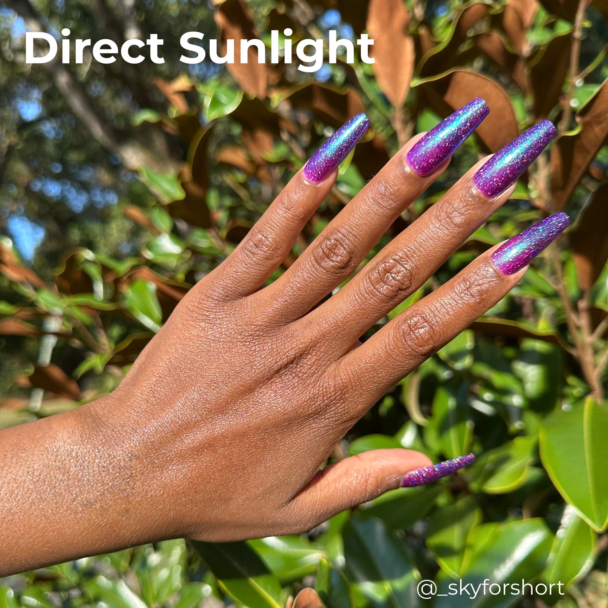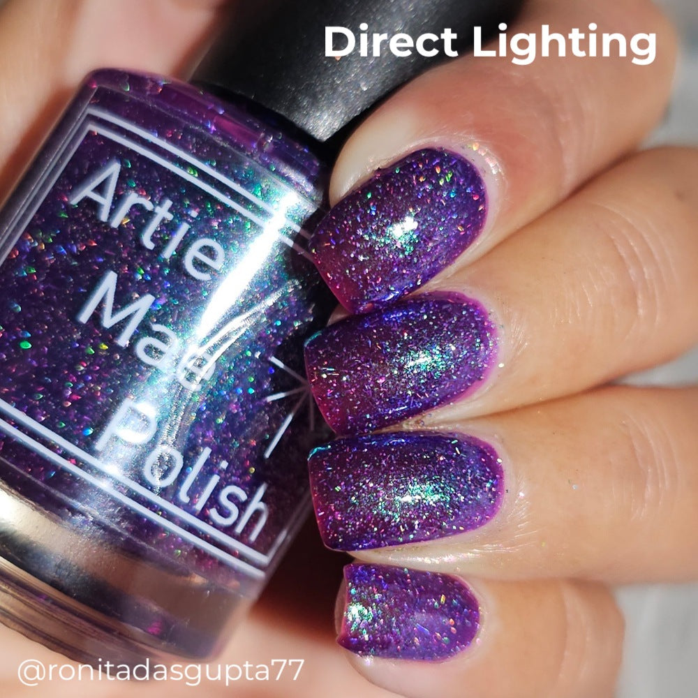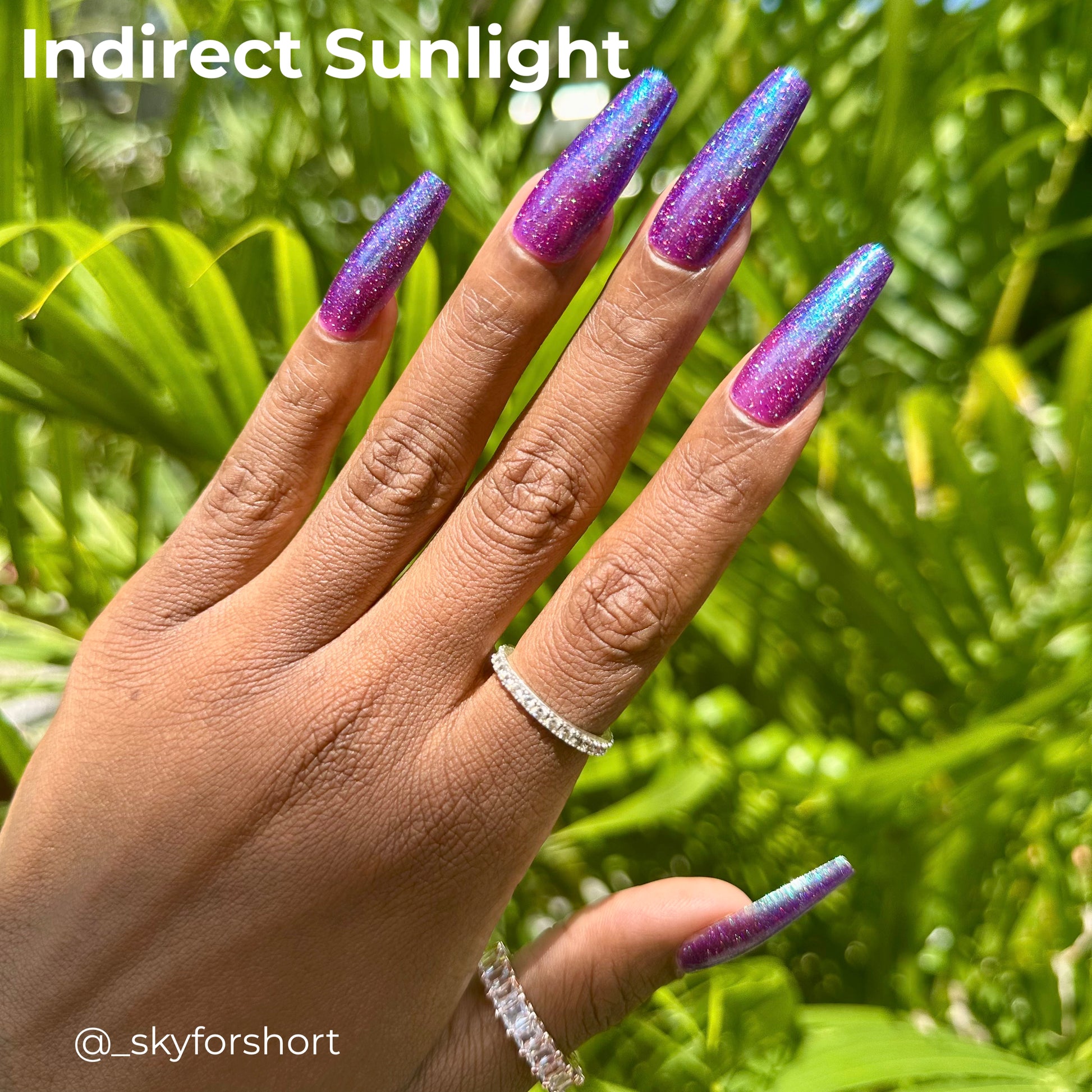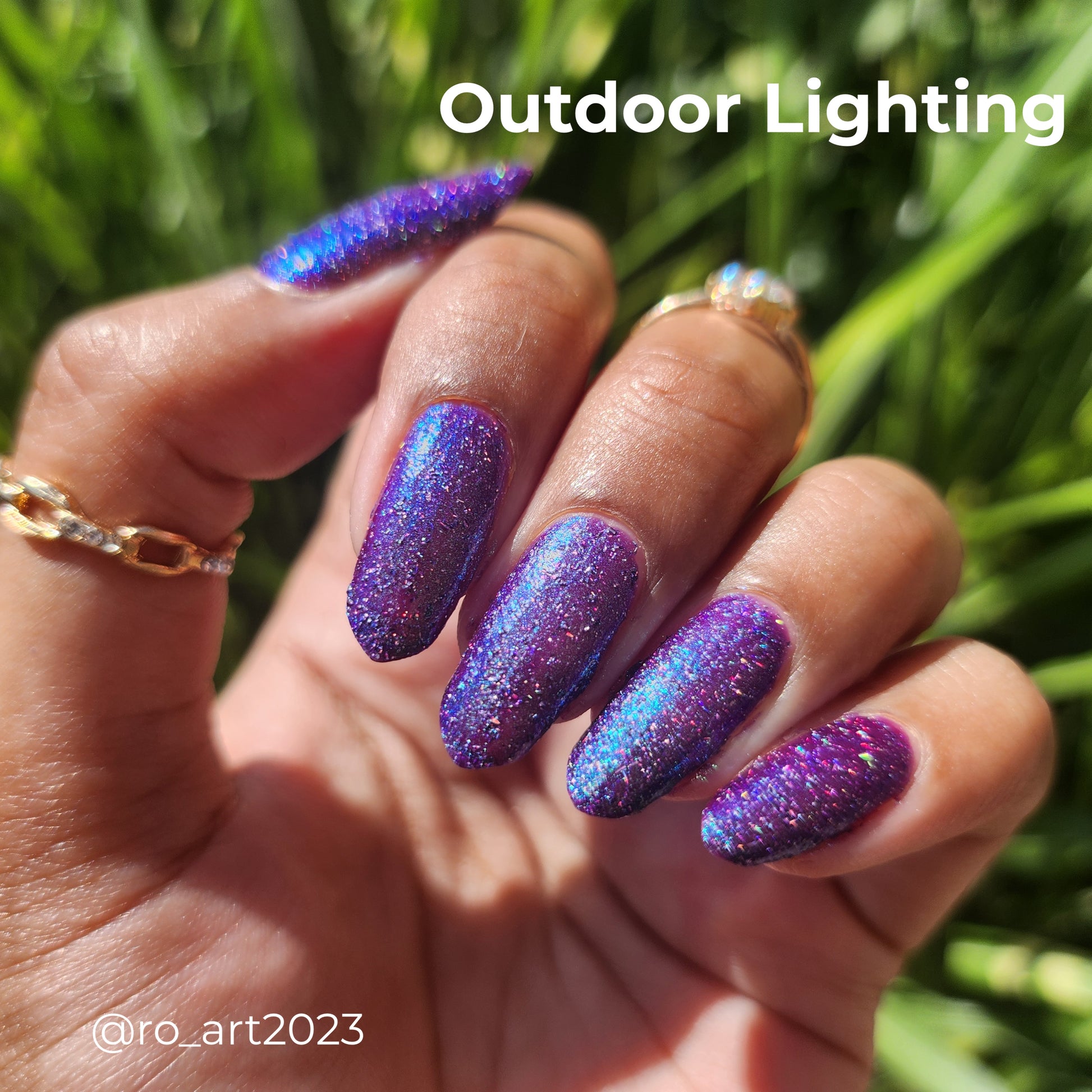 For my birthday this year, I am bringing you all Party Potion no. 27, a purple polish with a green/blue shifting shimmer, fine holo glitter, and holo flakes.