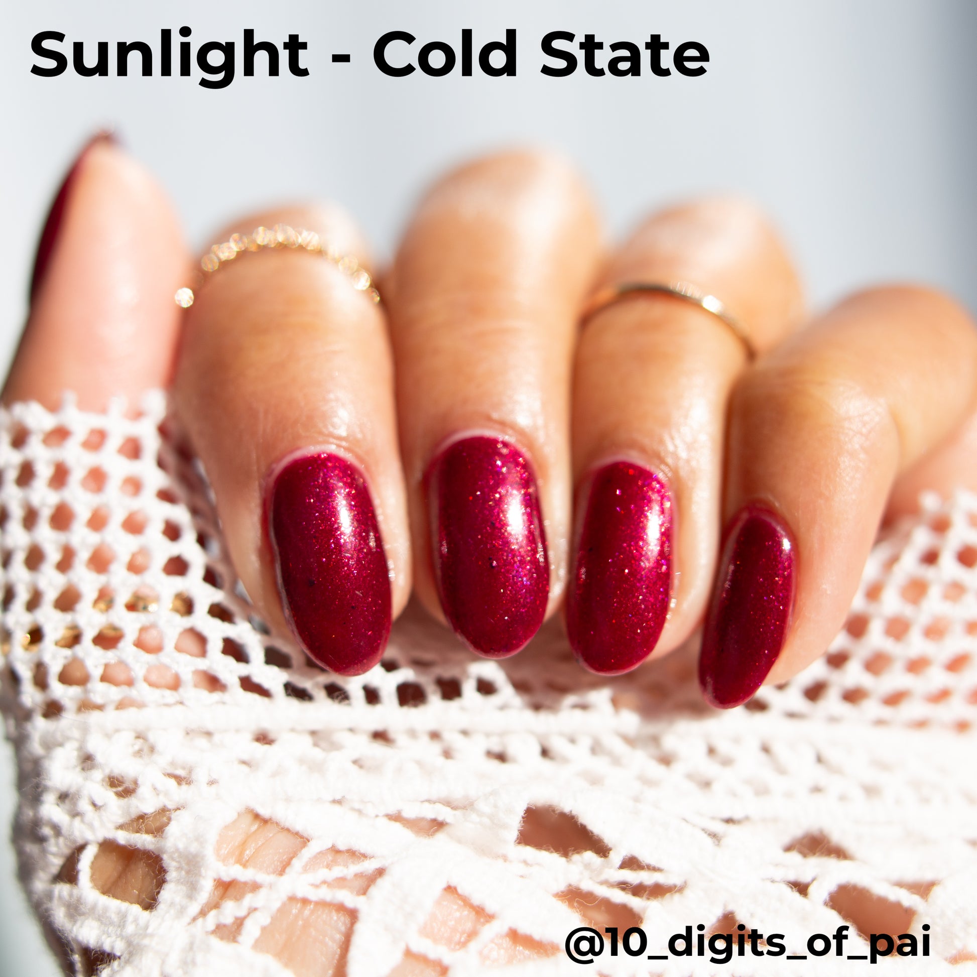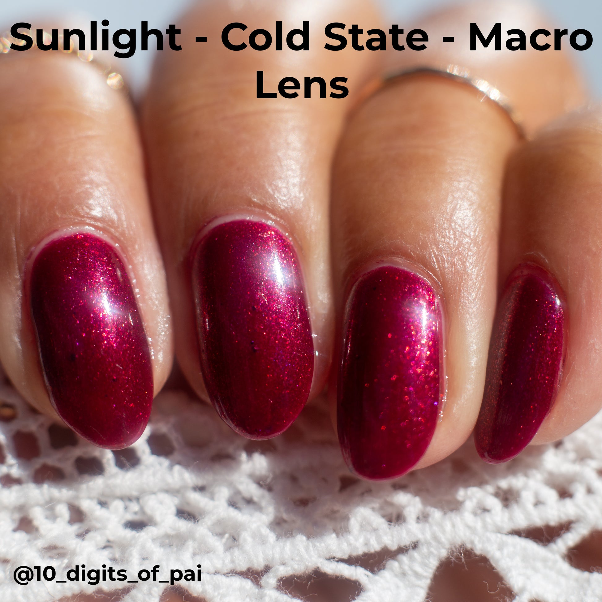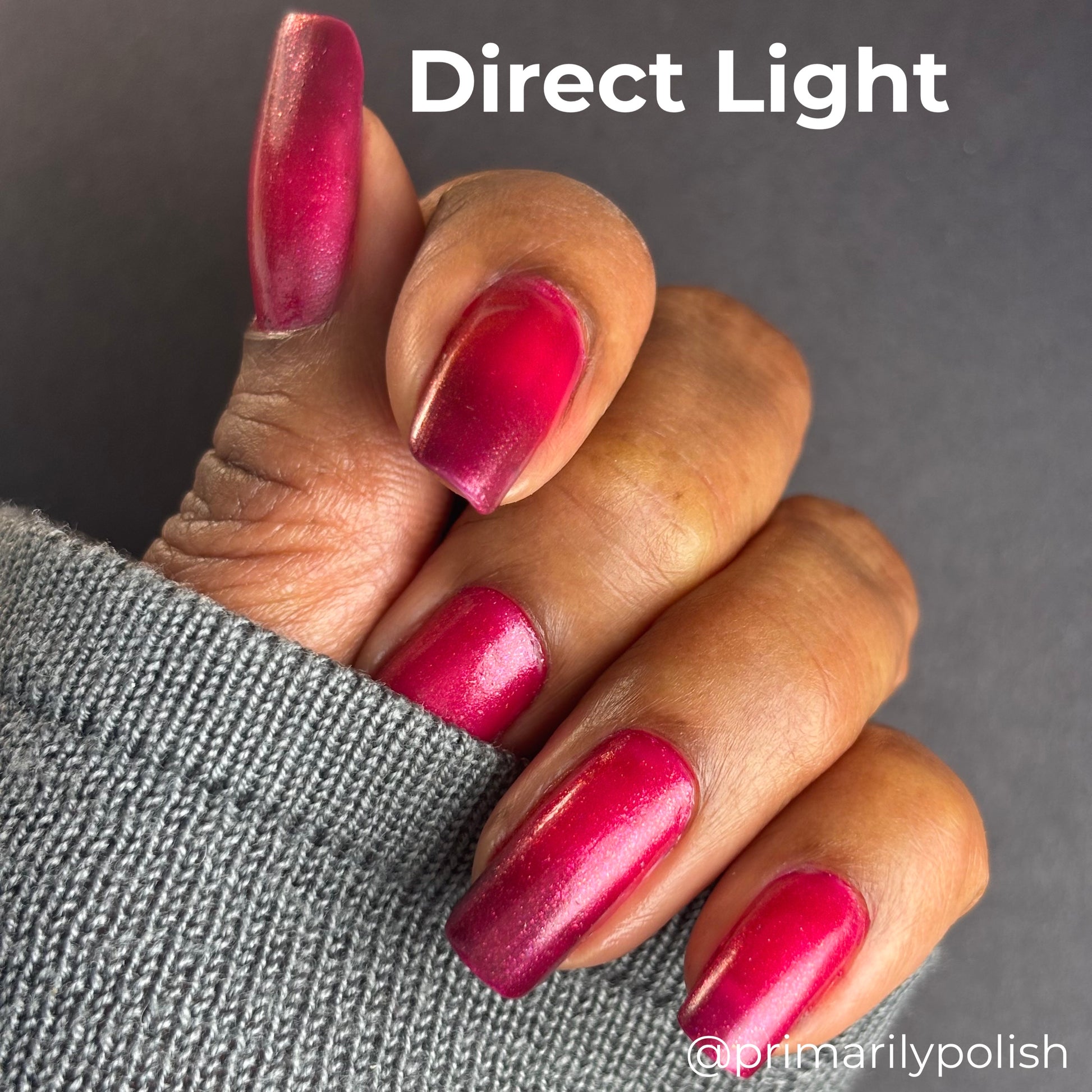 Who wouldn't go through extreme lengths and be susceptible to darkness when dealing with the grief and loss of their family? Scarlet Witch is a red shimmer thermal polish that goes from a bright red when warm to a moody maroon when cold.
